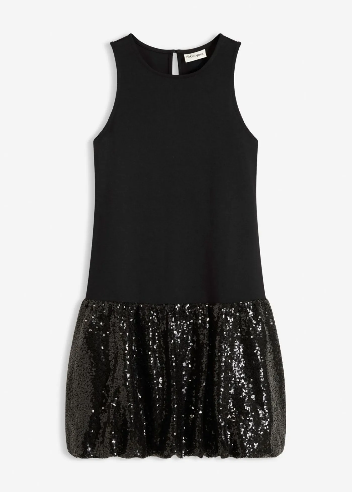 Vestido corto de cómodo Punto di Roma con falda globo de lentejuelas.
