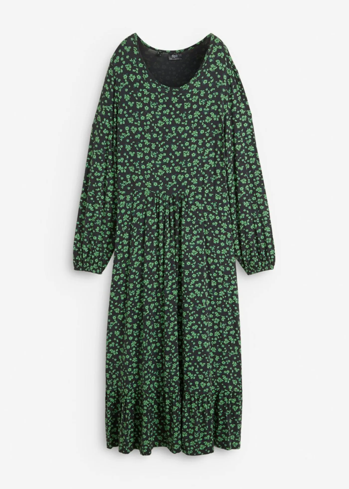Vestido de punto con volante en la falda que realza la figura. Largo total de aprox. 120 cm en talla 40/42. Se puede lavar a máquina.