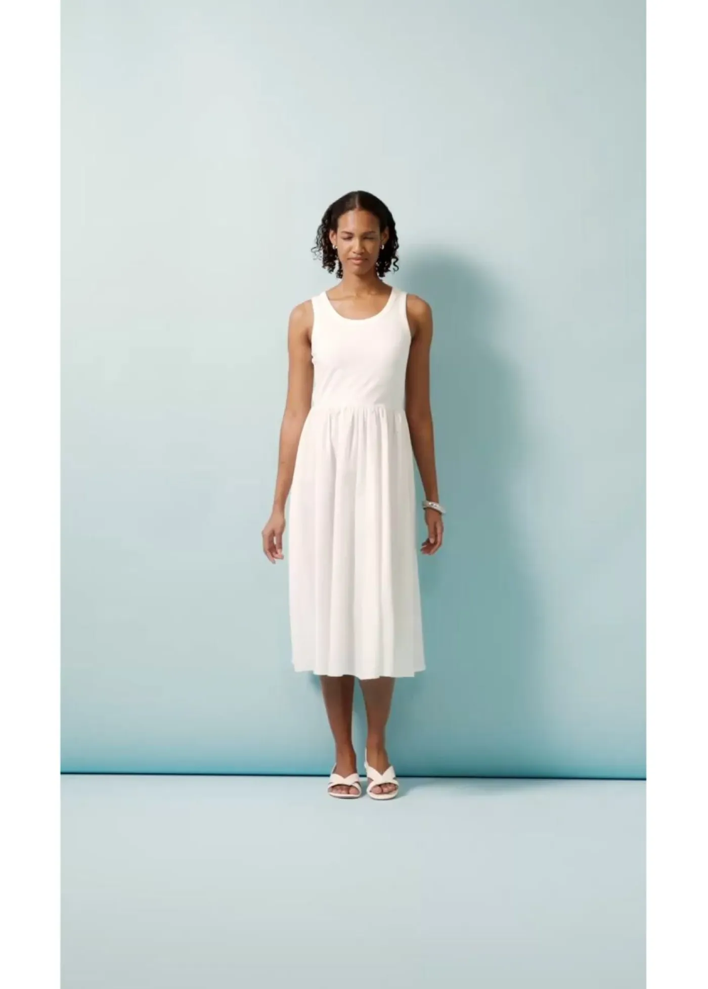 Vestido largo en mezcla de materiales.