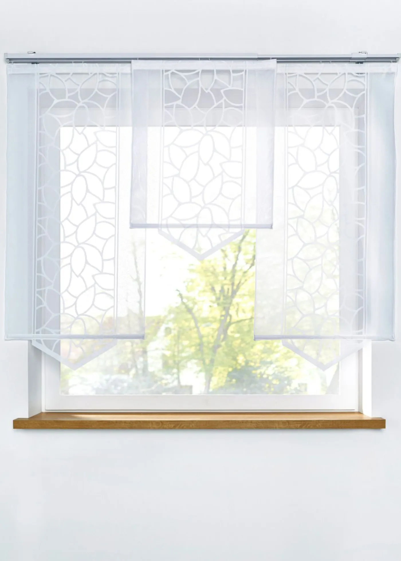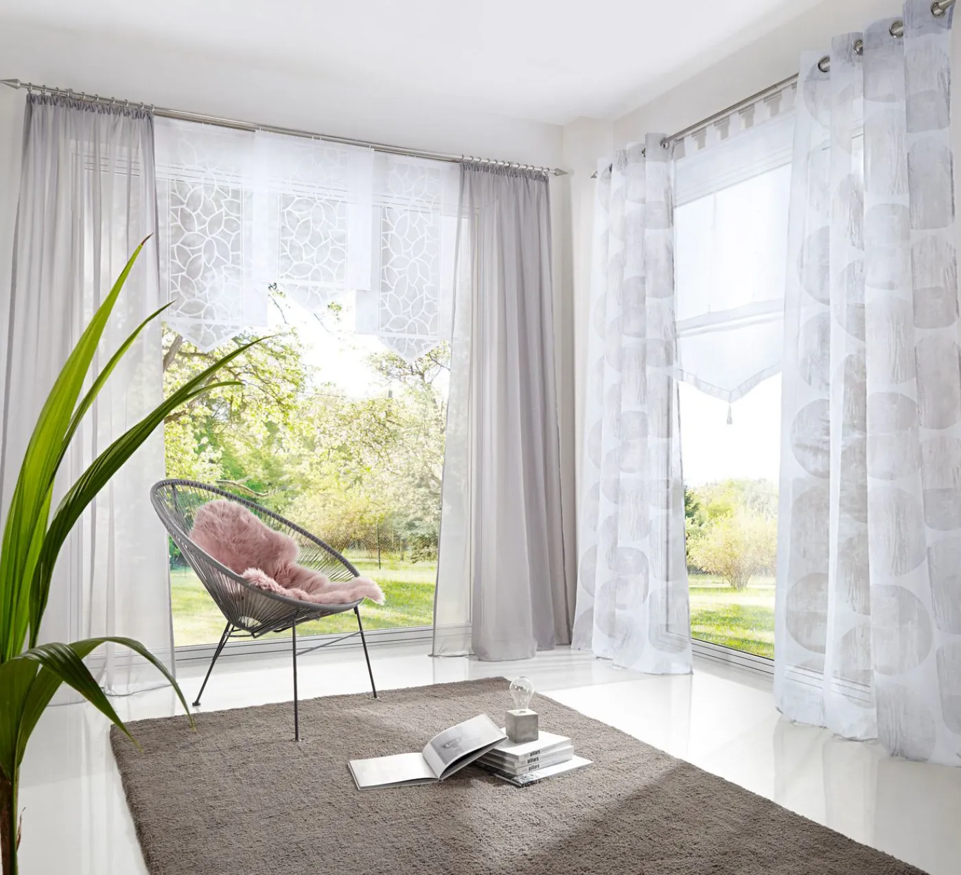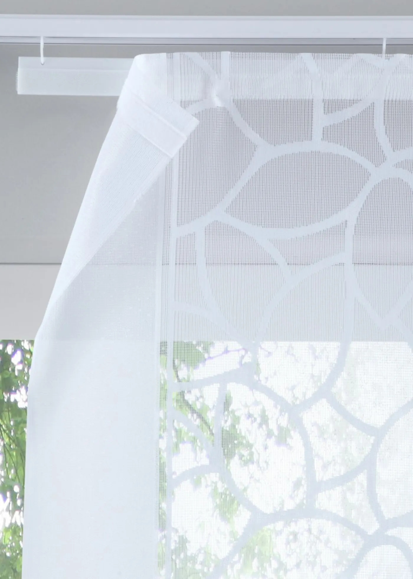 La cortina semitransparente está hecha de jacquard de alta calidad e impresiona por su diseño y su borde triangular. Los lados son lisos y está estampado en el centro, la altura se da incluyendo el acabado del triángulo. La barra suministrada le da su caída recta. La cortina deslizante es un hermoso elemento de atracción para su ventana.