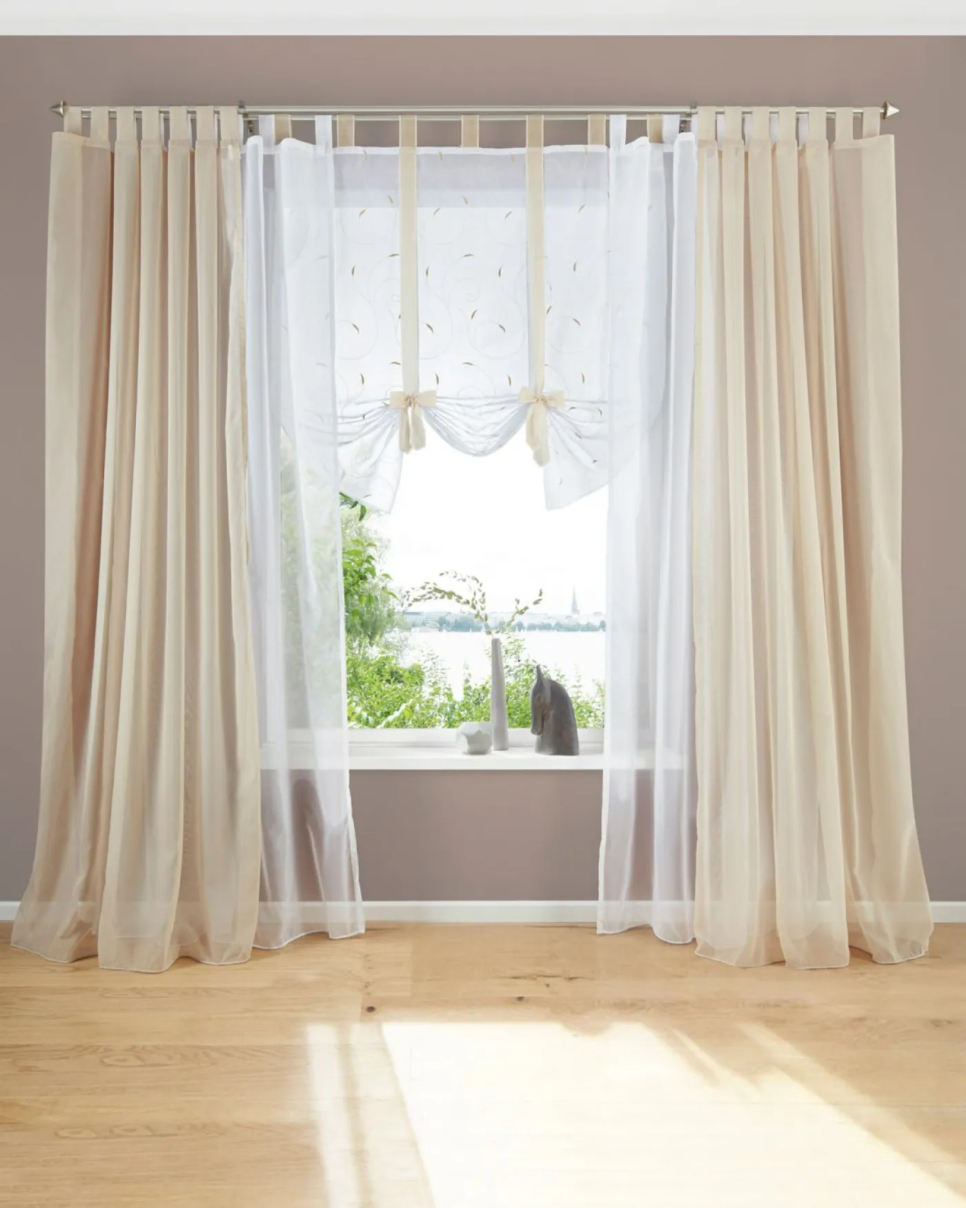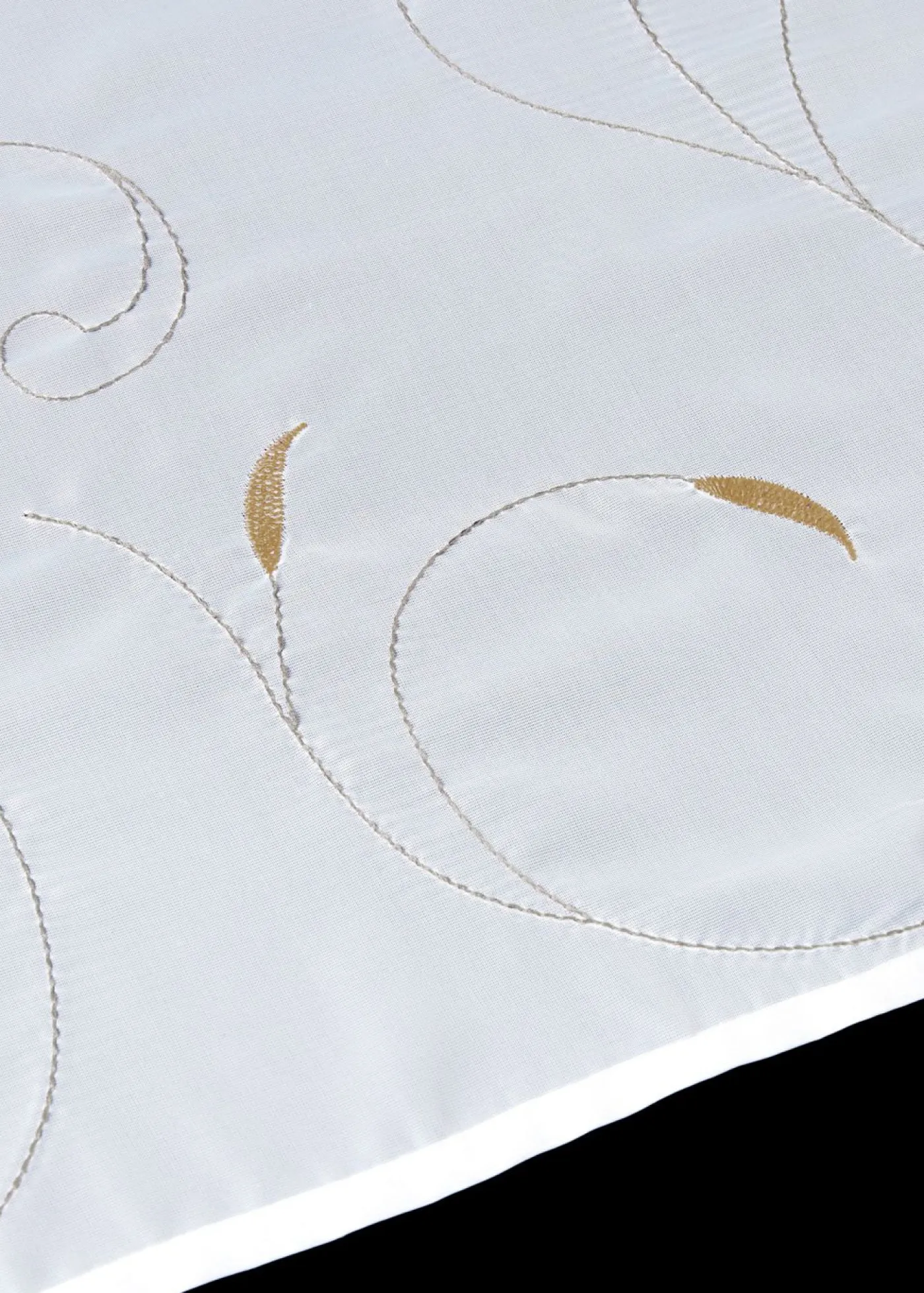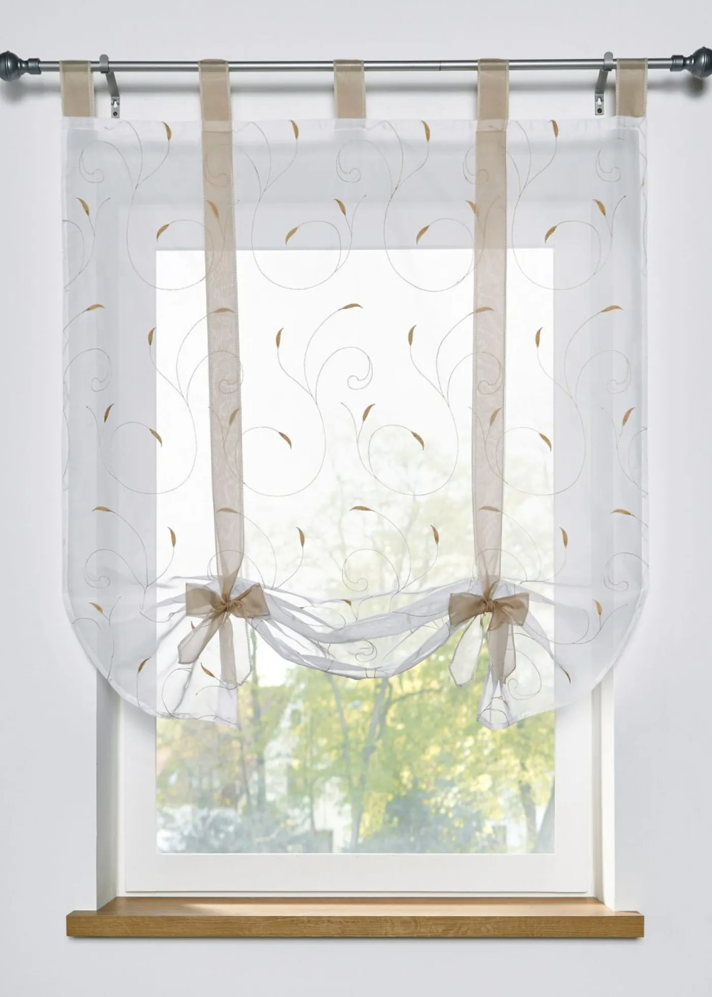 Los delicados bordados y las bonitas cintas aportan un toque de color a la sencilla cortina. El tejido con hilo fino de gasa transparente de calidad se integra perfectamente en el diseño. La cortina translúcida se puede fruncir a la altura deseada con las cintas y fijar con lazos o nudos. La suspensión mediante trabillas se puede realizar rápidamente en la barra de la cortina. Decoración de ventana dulce en aspecto moderno con la cortina transparente.
