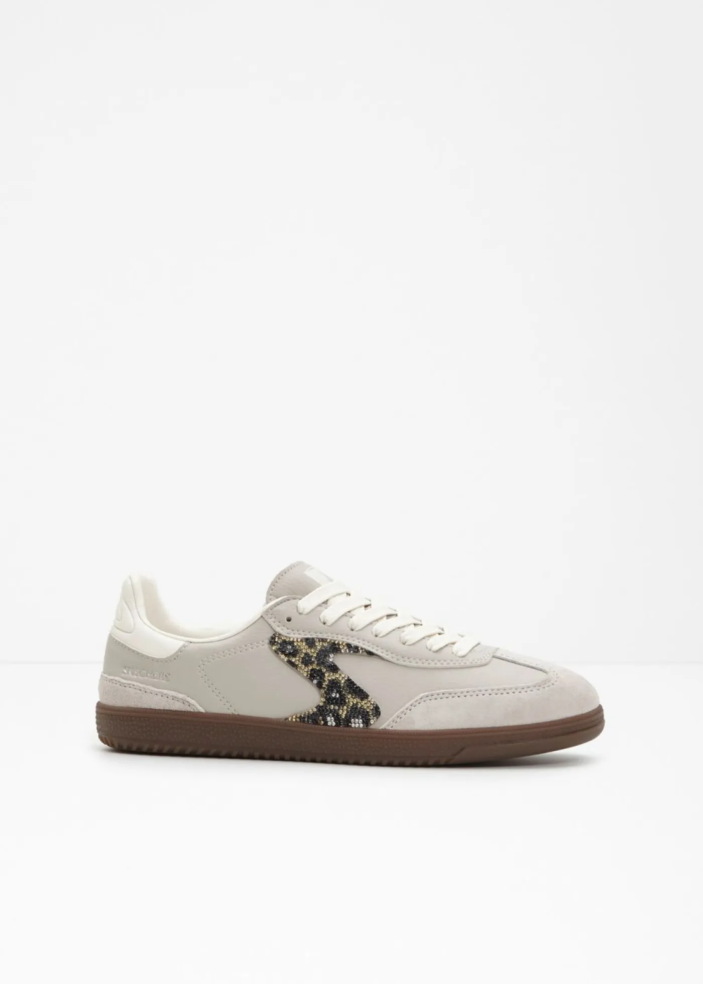 Zapatillas deportivas modernas con piedras brillantes y aspecto de leopardo.