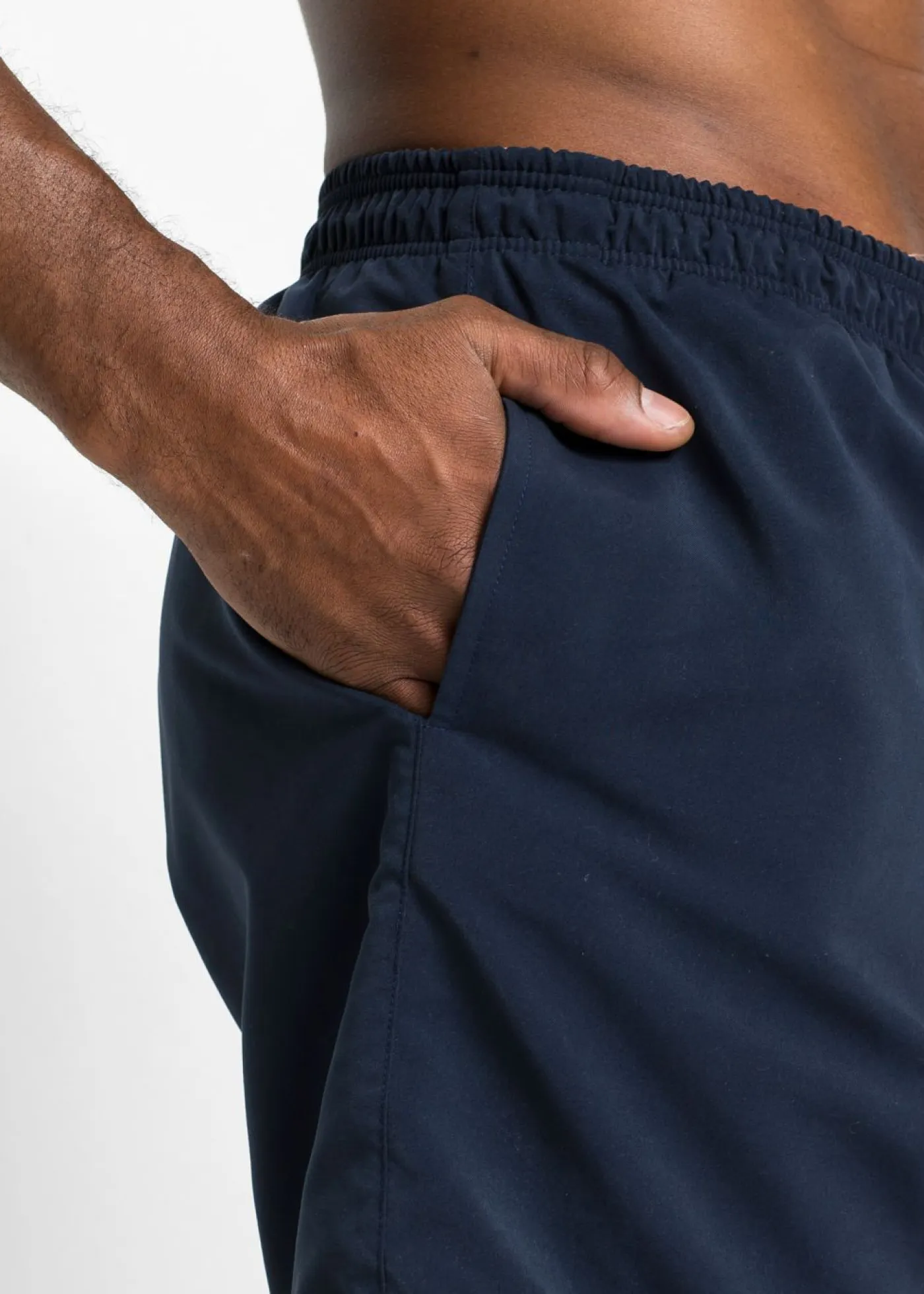 Bonito bañador de hombre con cinturilla elástica. Bañador de hombre con cinturilla elástica y cordones. Calzoncillo interior y bolsillo para monedas confeccionados en malla de calidad. Aplicación, cordón y cinturilla interior en naranja neón en contraste.