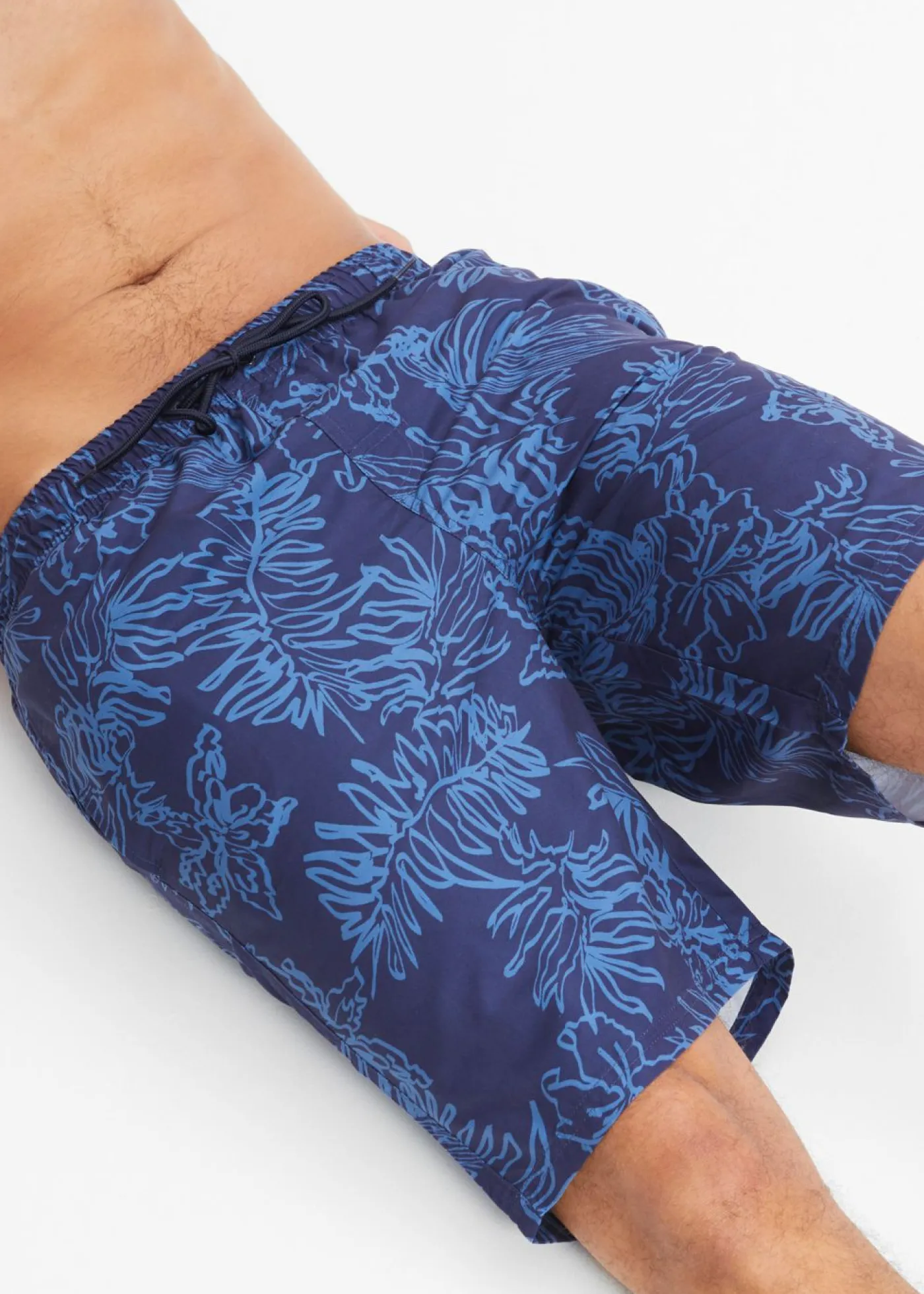 Bañador deportivo con un moderno estampado. Con elástico y cordón para ajustar. Bolsillos laterales. Con calzoncillo interior y un pequeño bolsillo para monedas.