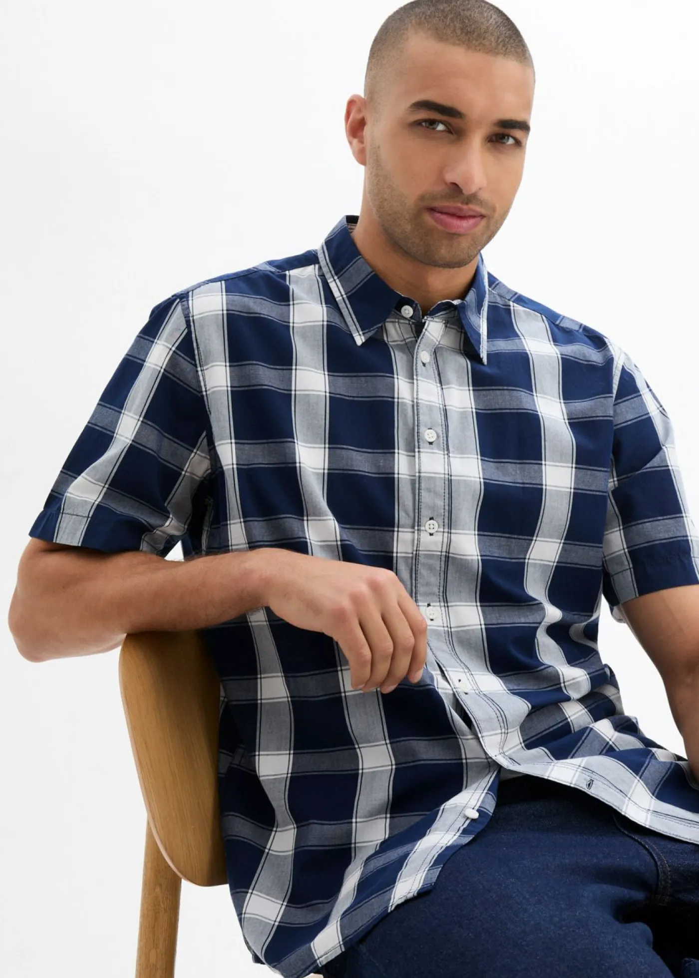 Camisa de manga corta con moderno estampado de cuadros. Con dobladillo redondeado. Se puede lavar a máquina.