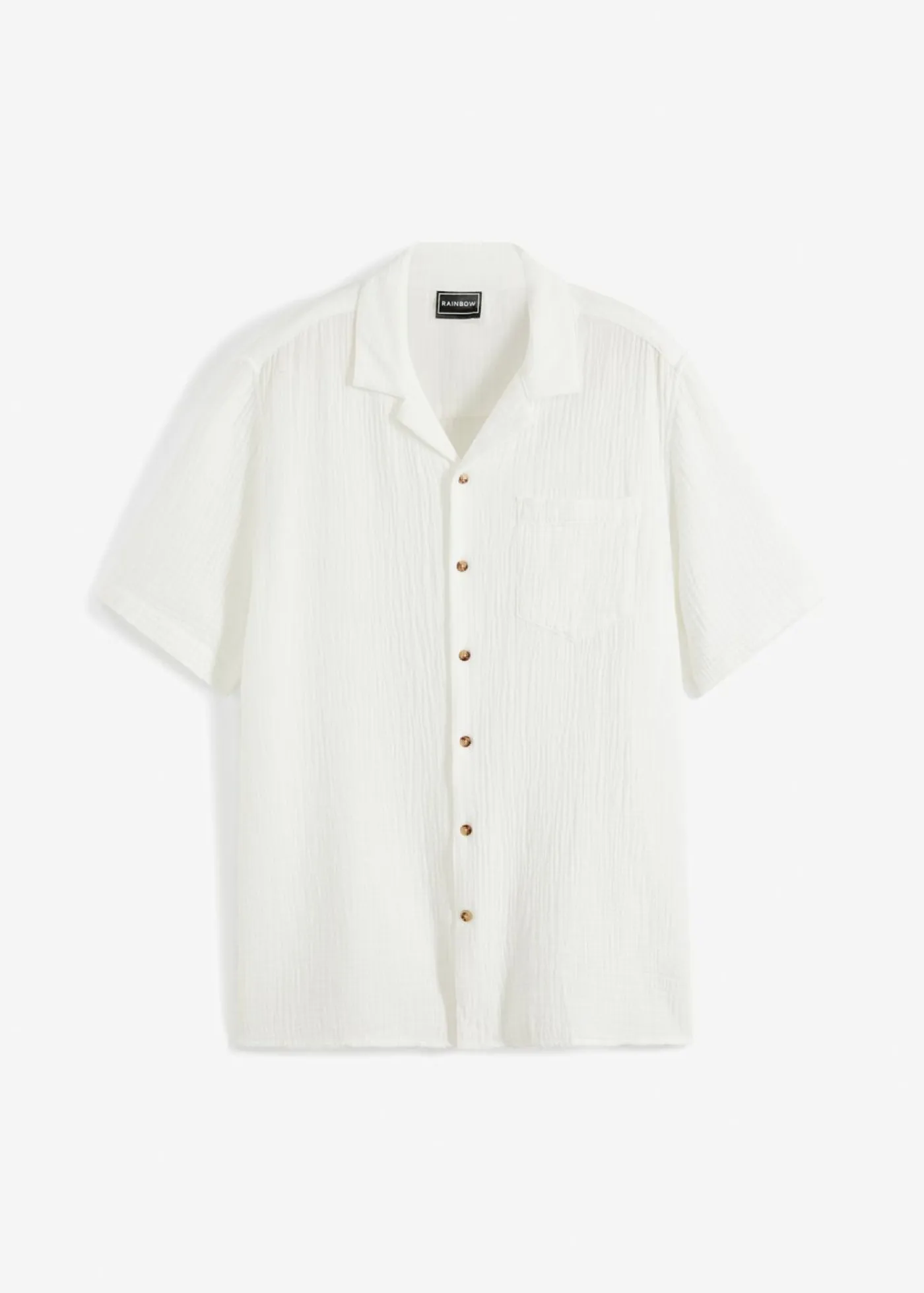 Moderna camisa de muselina con manga corta con cuello de solapa.