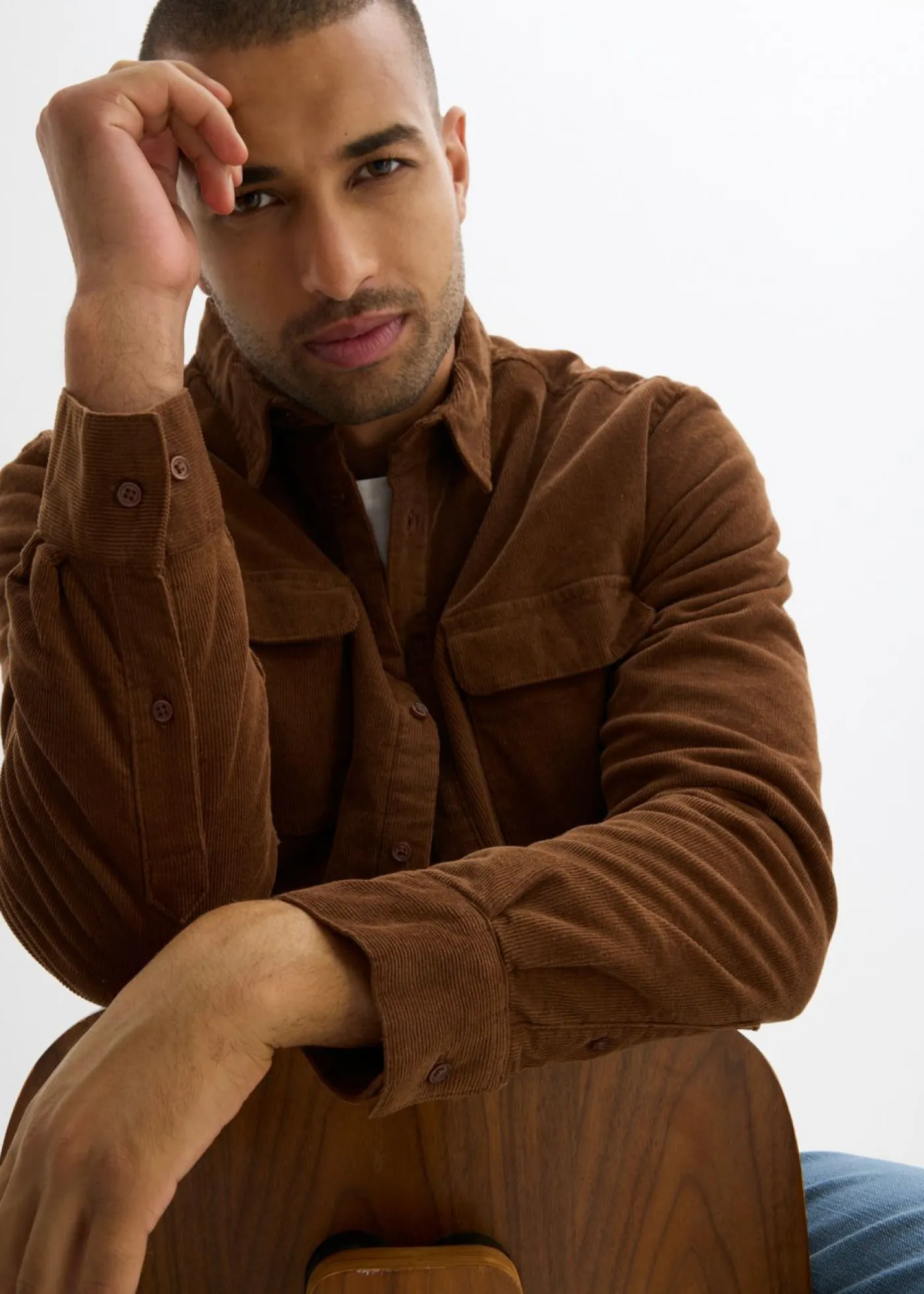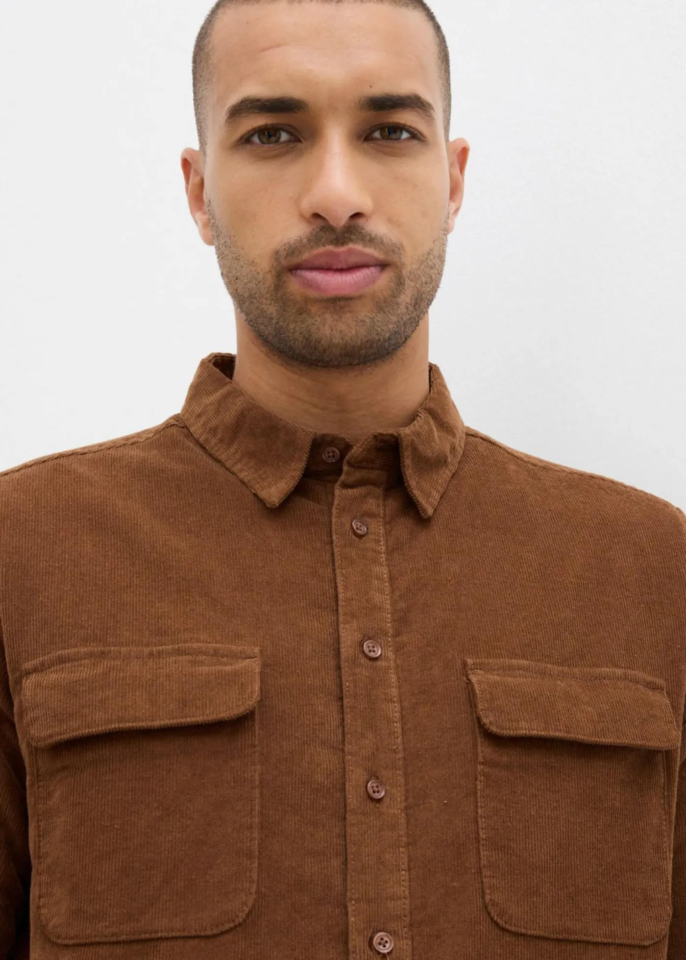 Moderna camisa de pana con dos bolsillos en el pecho.
