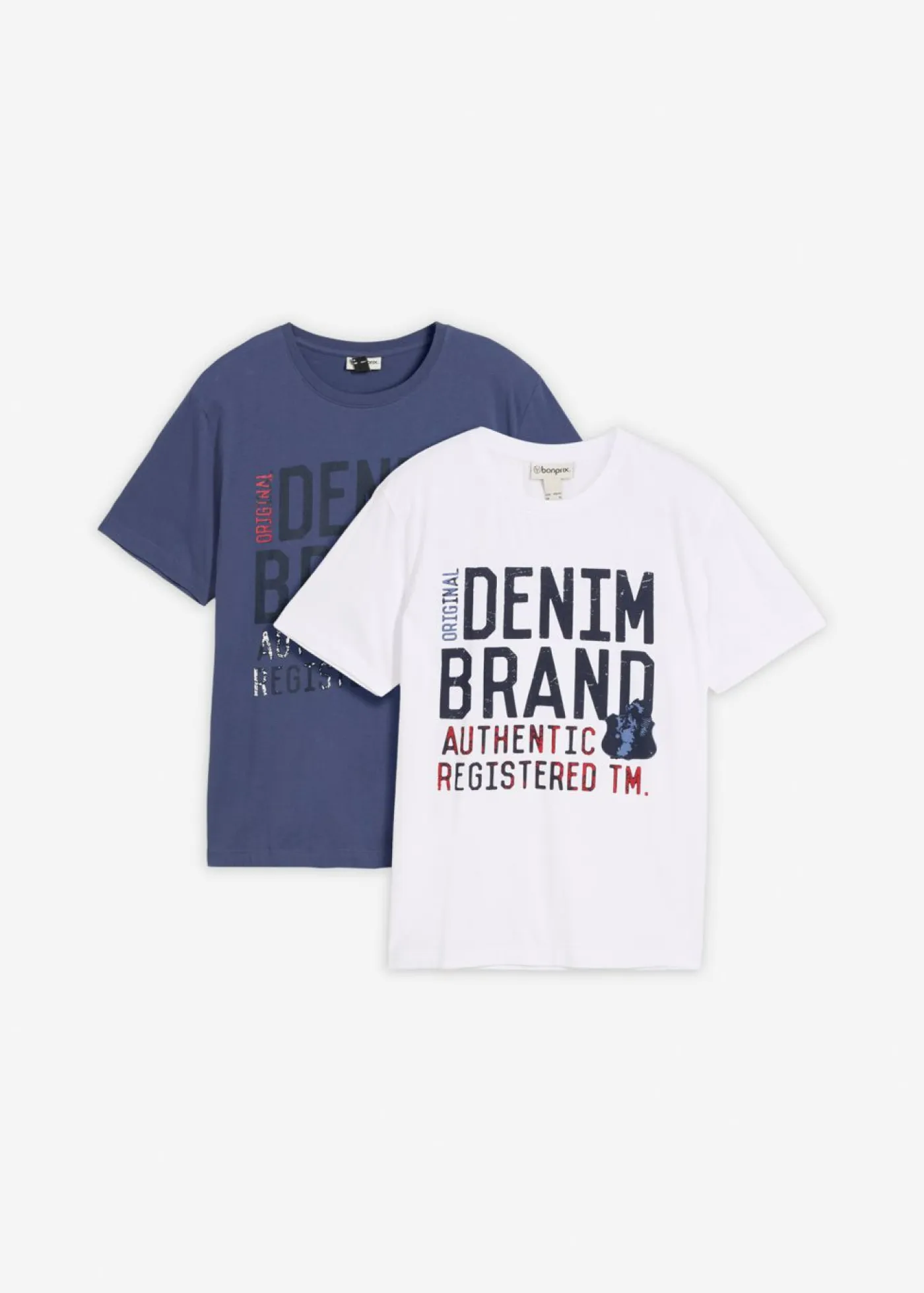 Prácticas camisetas con corte regular, cuello redondo clásico y estampado moderno en la parte delantera.