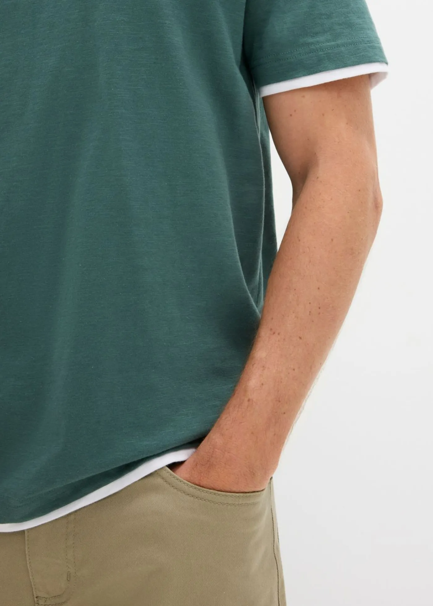 Moderna camiseta con corte regular, moderno aspecto 2 en 1 y detalles en contraste.