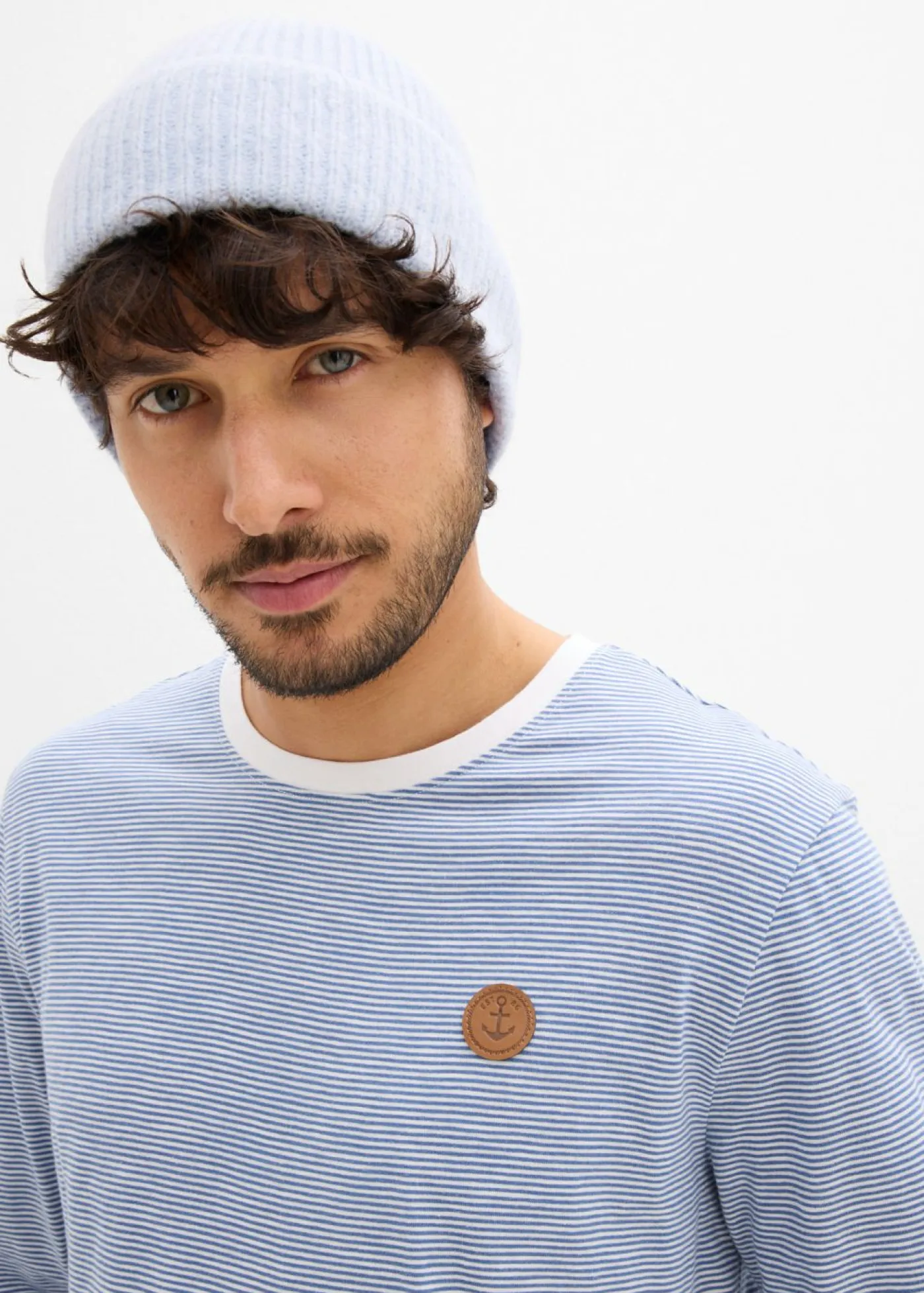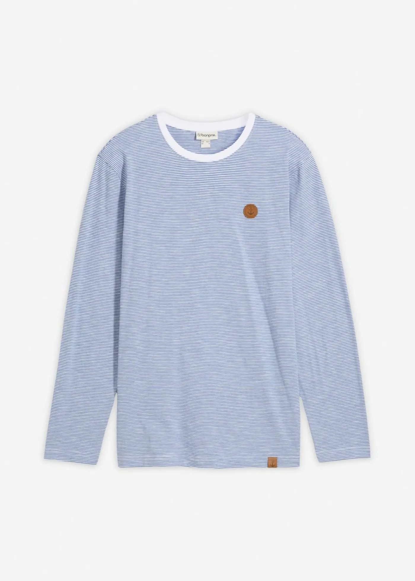 Moderna camiseta de manga larga con corte regular y rayas finas.