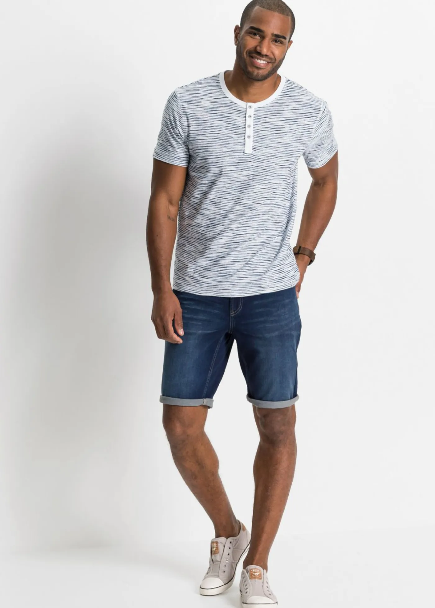 Camiseta con estampado de rayas irregulares. Con cuello blanco.