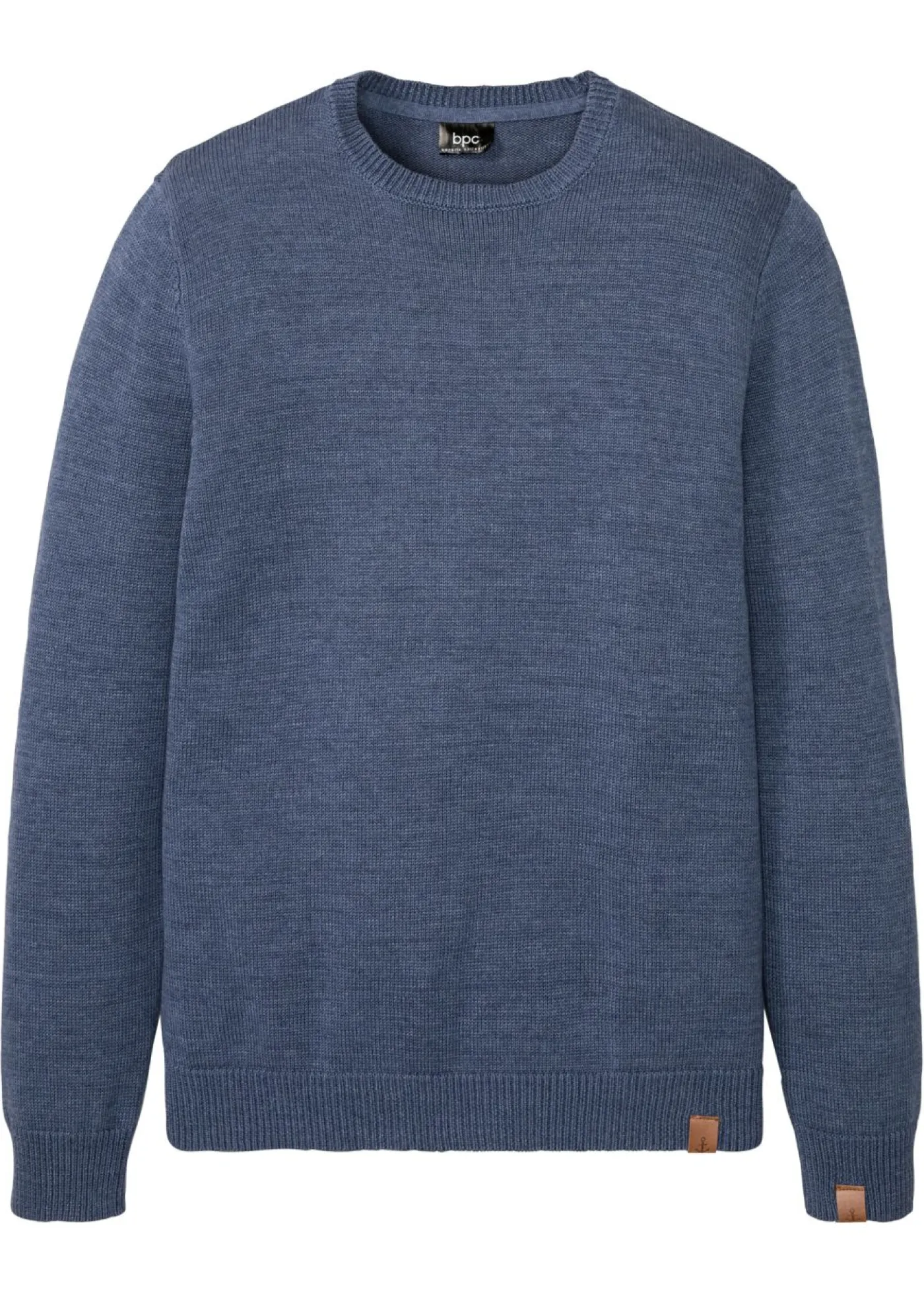 Jersey moderno con cuello redondo y detalles de piel sintética. Se puede lavar a máquina.