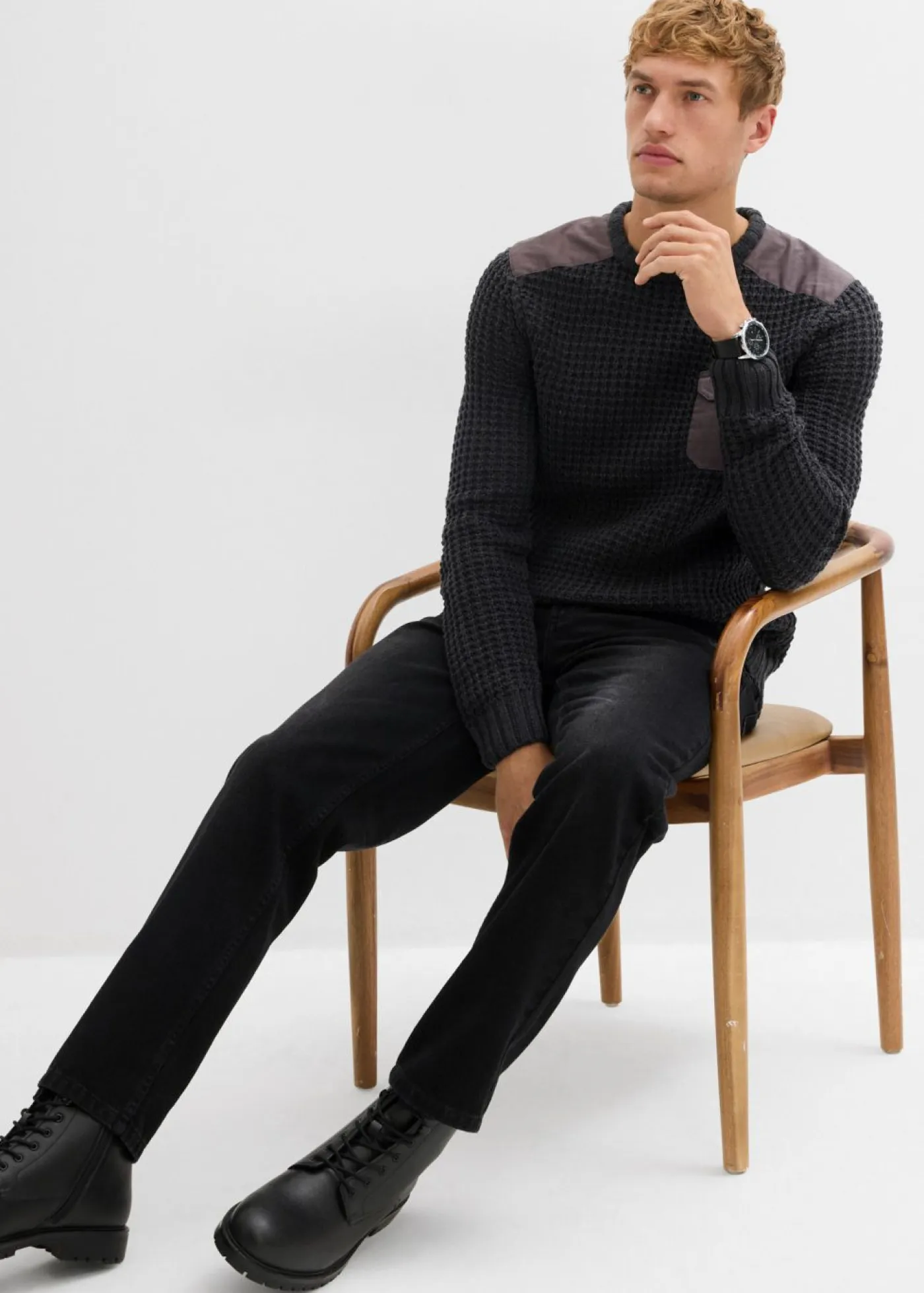Moderno jersey con cuello redondo y un bolsillo en el pecho.