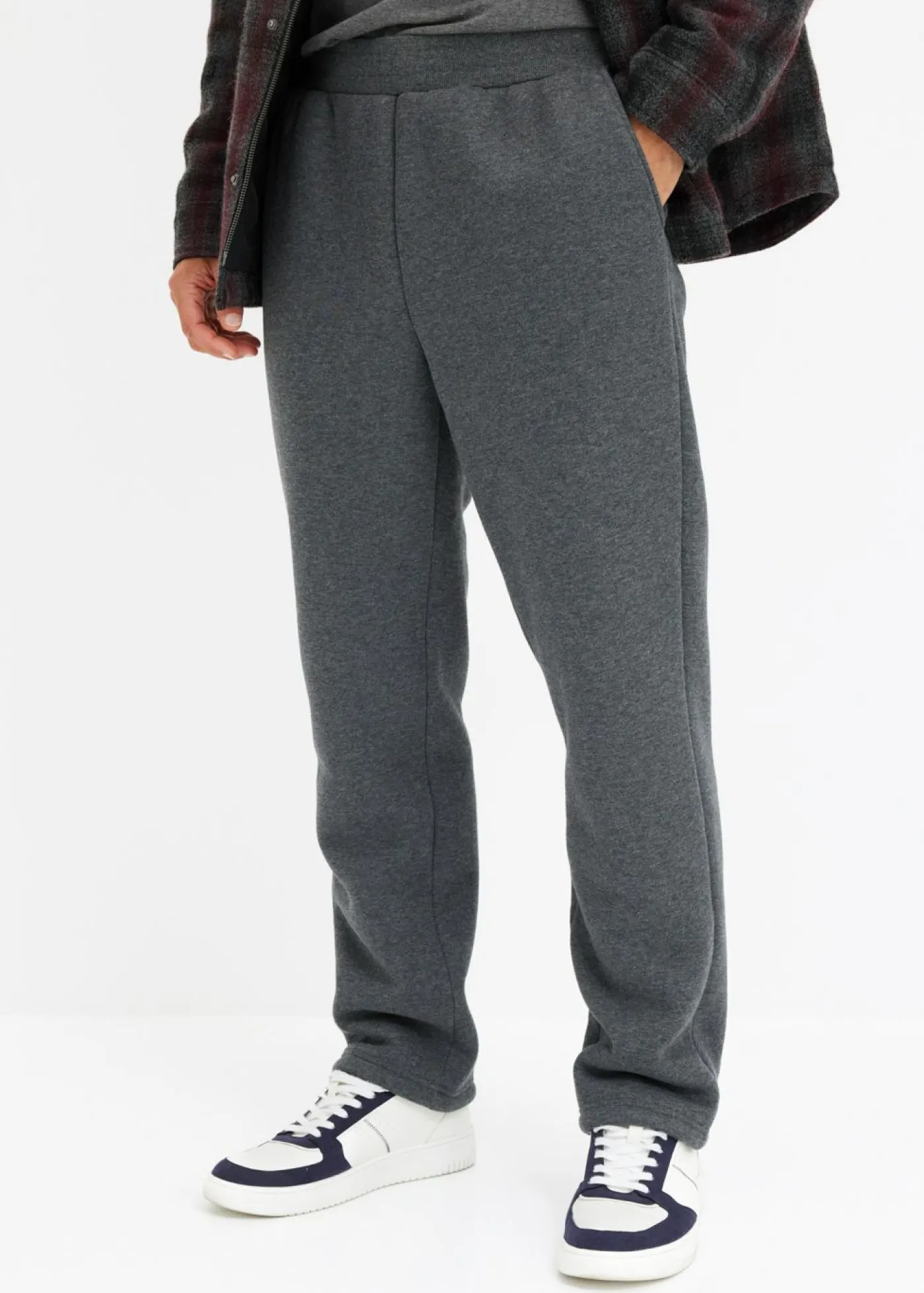 Pantalón básico de chándal con puños de canalé, tres bolsillos y forro suave en el interior.