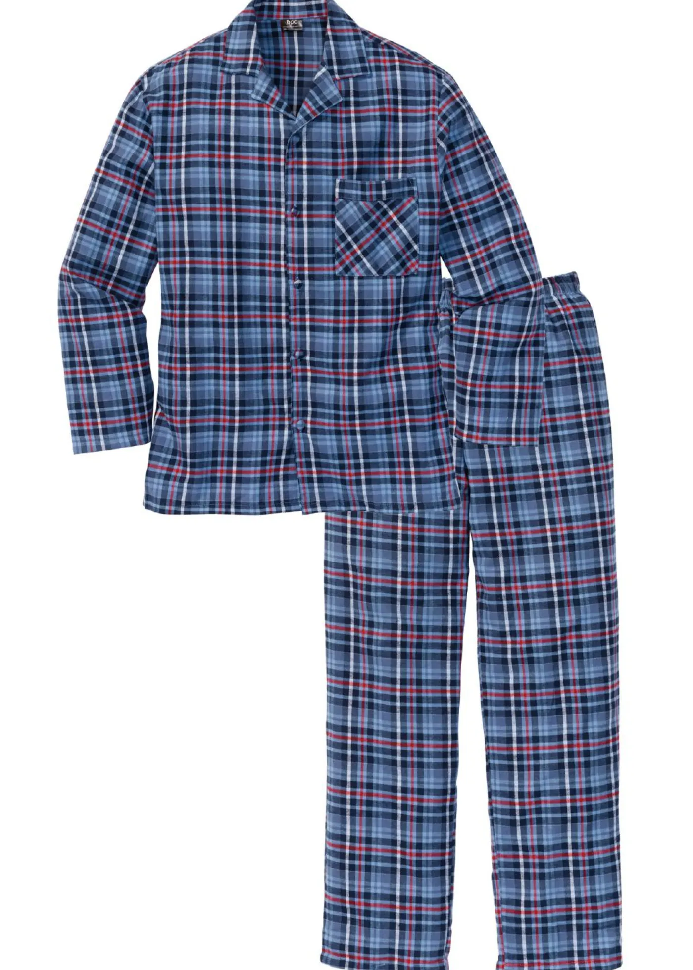 Cómodo y moderno: pijama de franela suave de calidad con botones y pantalón largo para hombres. Cómodo pijama de franela de calidad.