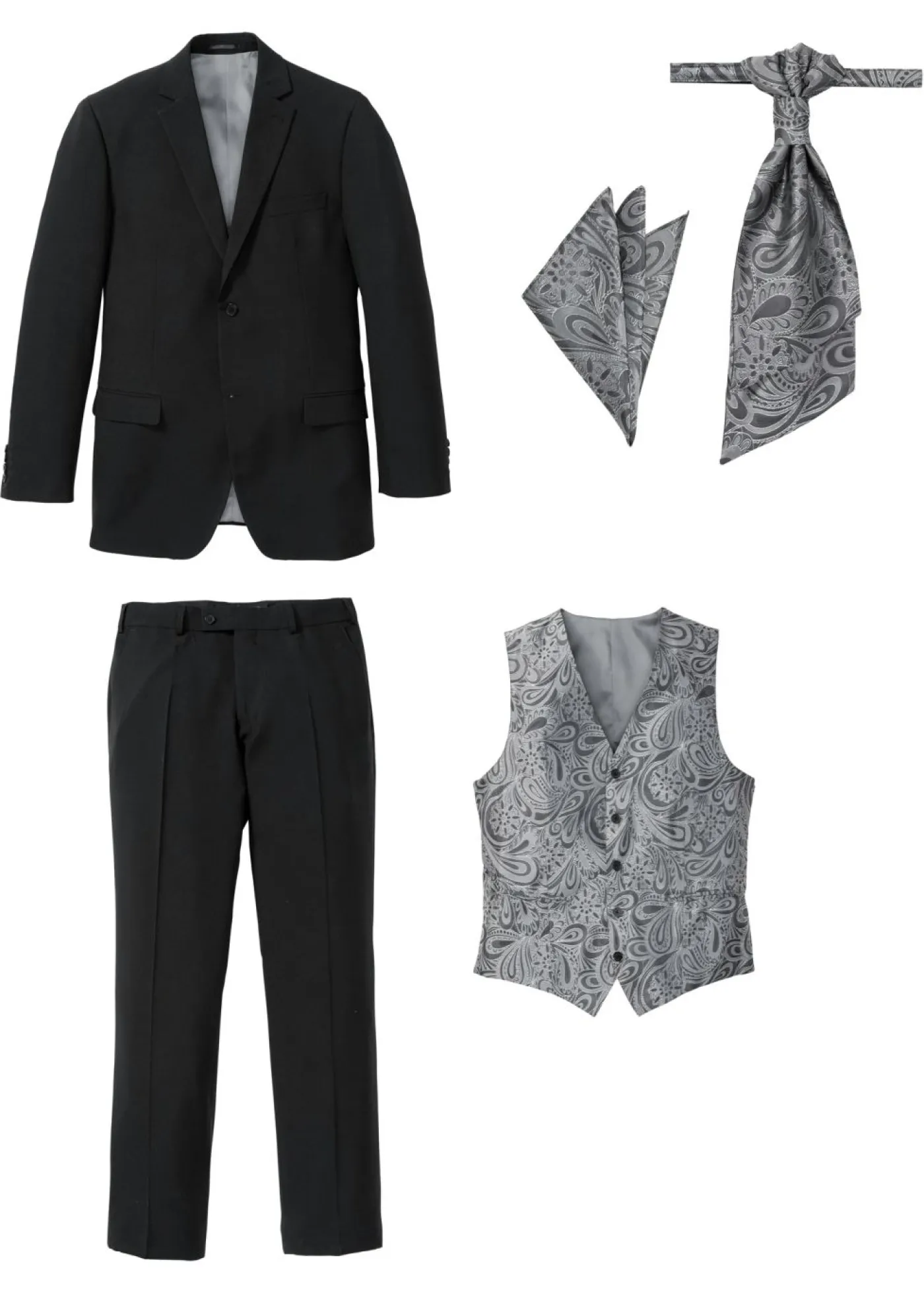 Traje de boda (5 piezas) con chaleco y plastrón, regular fit, tallas estándar (E)