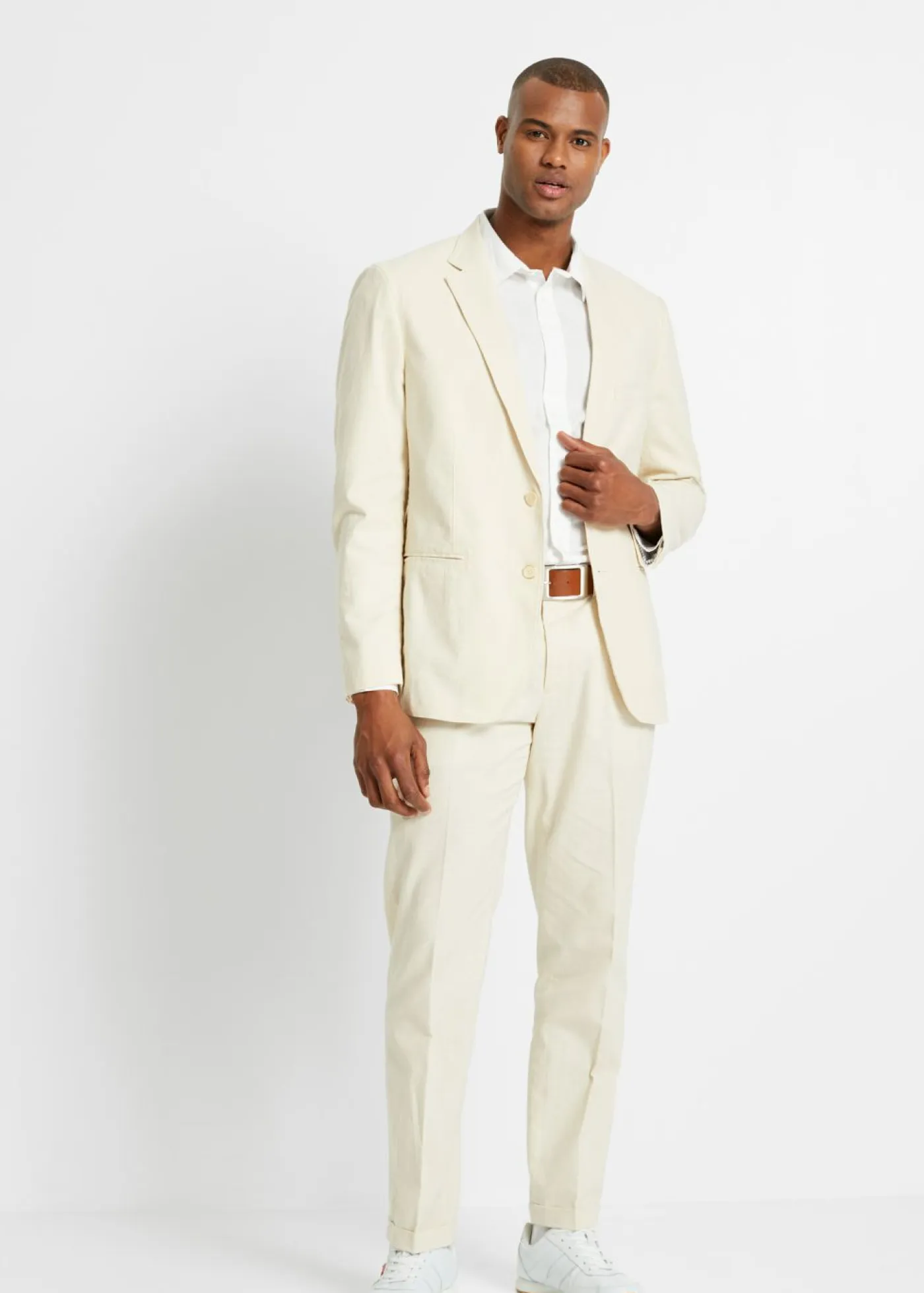 Traje moderno de lino (2 piezas) compuesto por americana y pantalón.