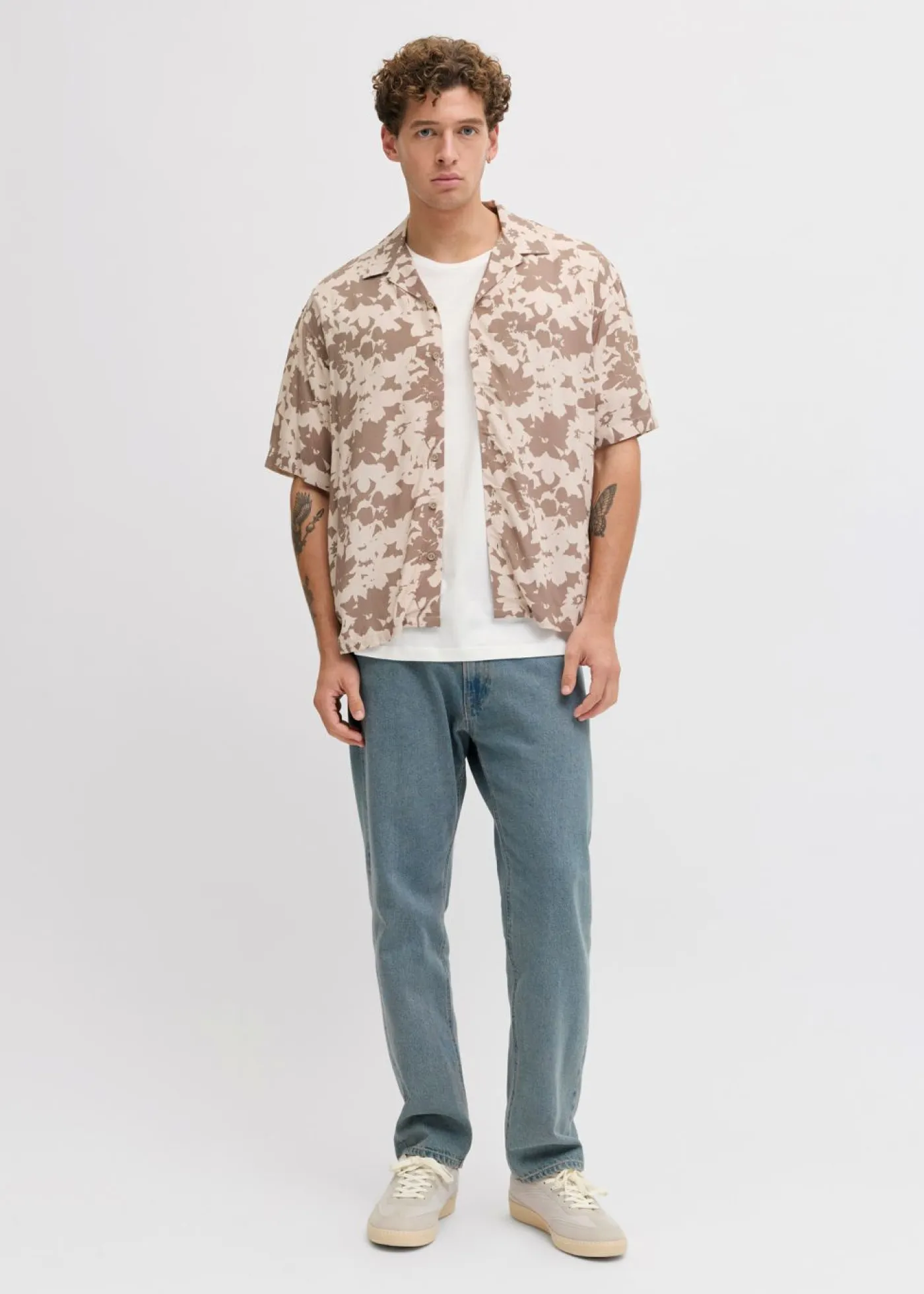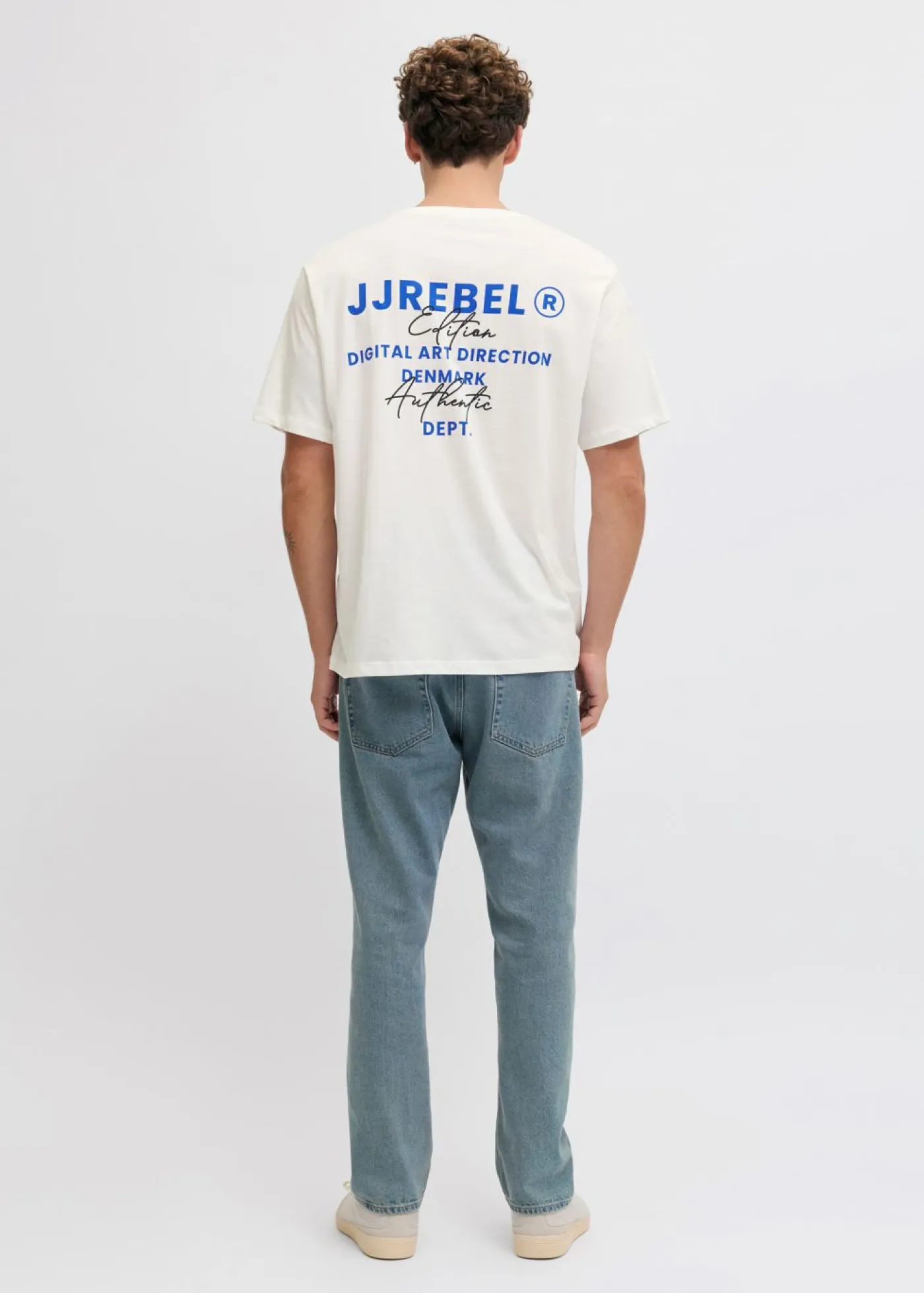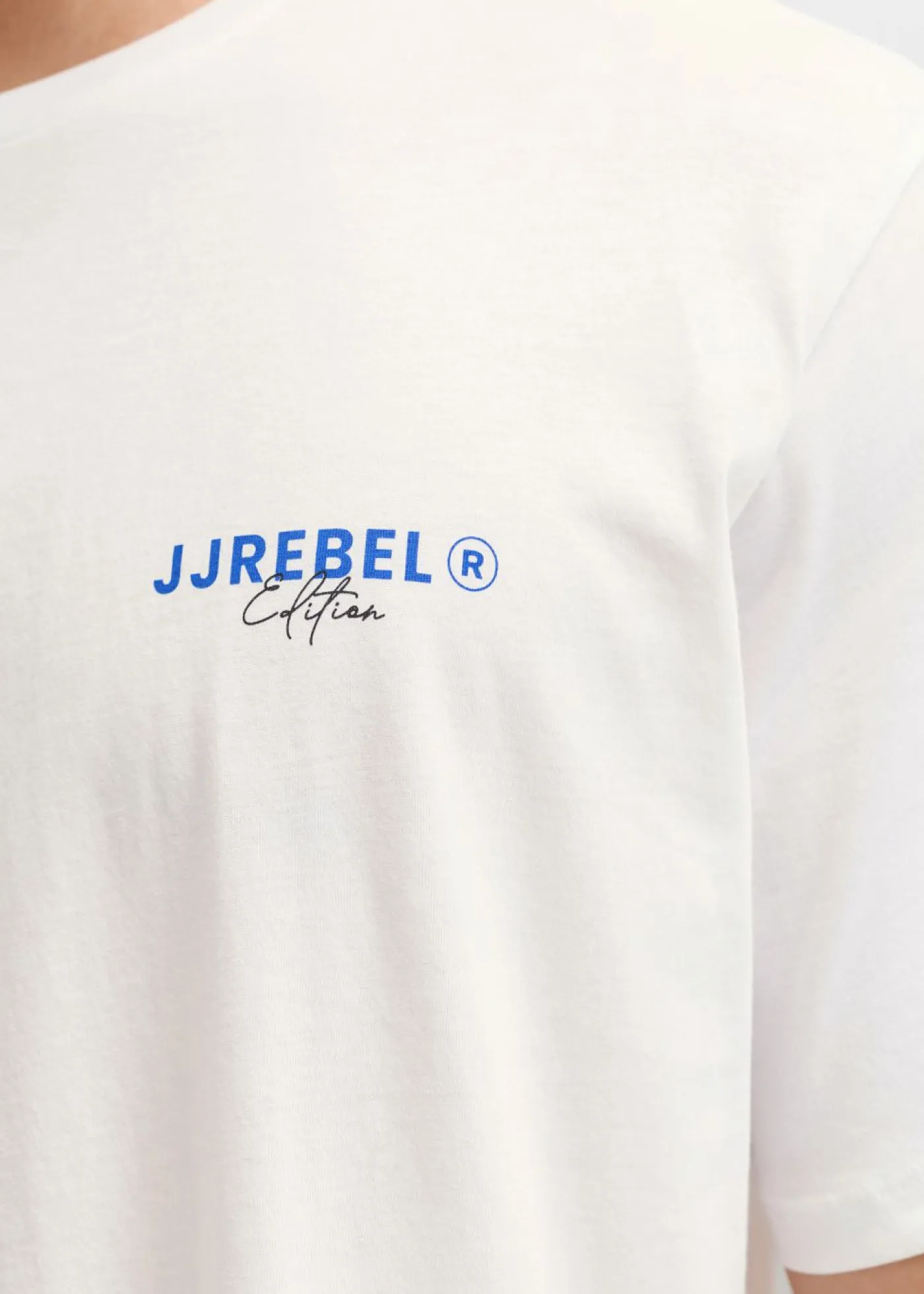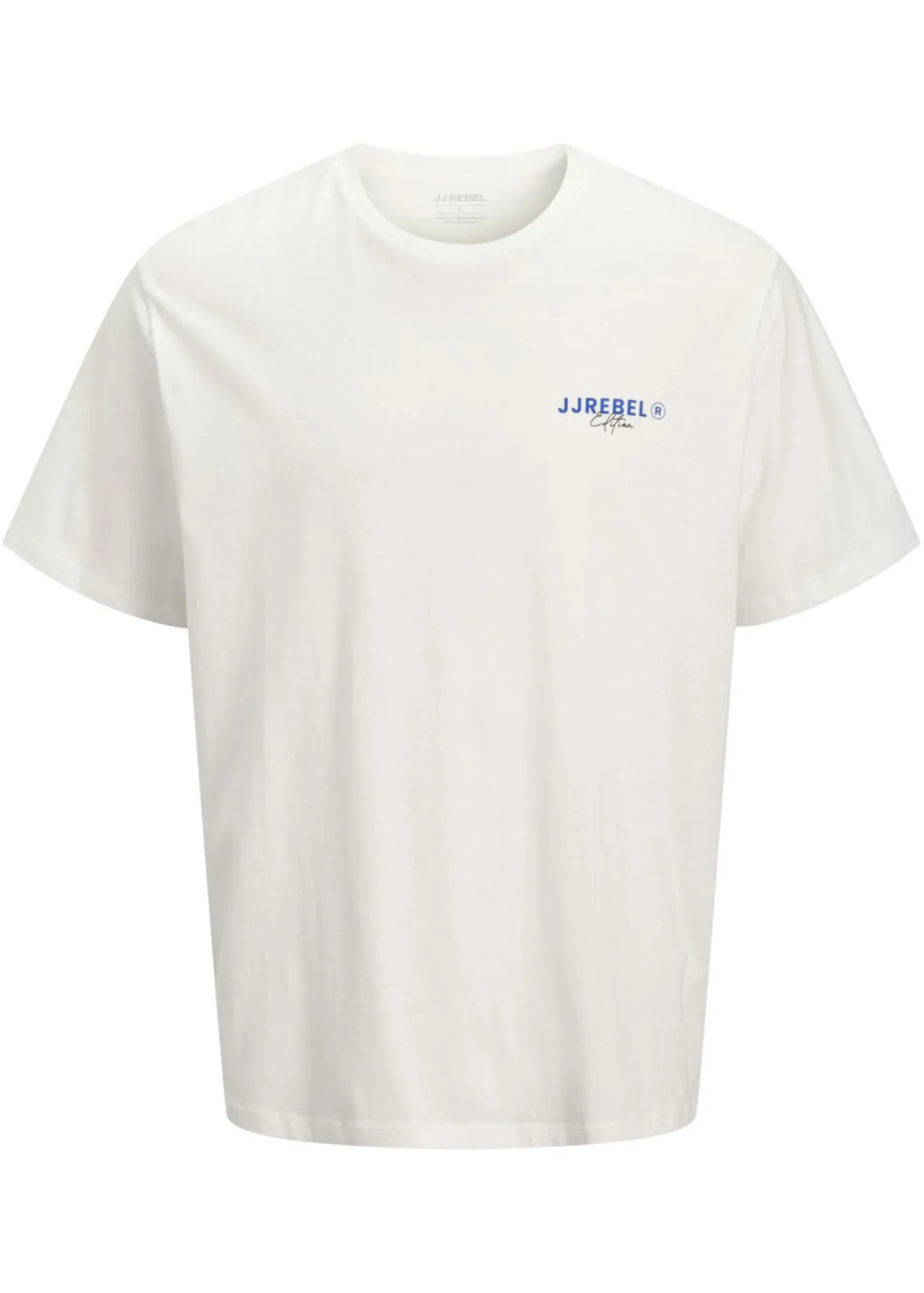 JJ REBEL: camiseta informal de estilo urbano con largo clásico y estampado en la parte posterior.