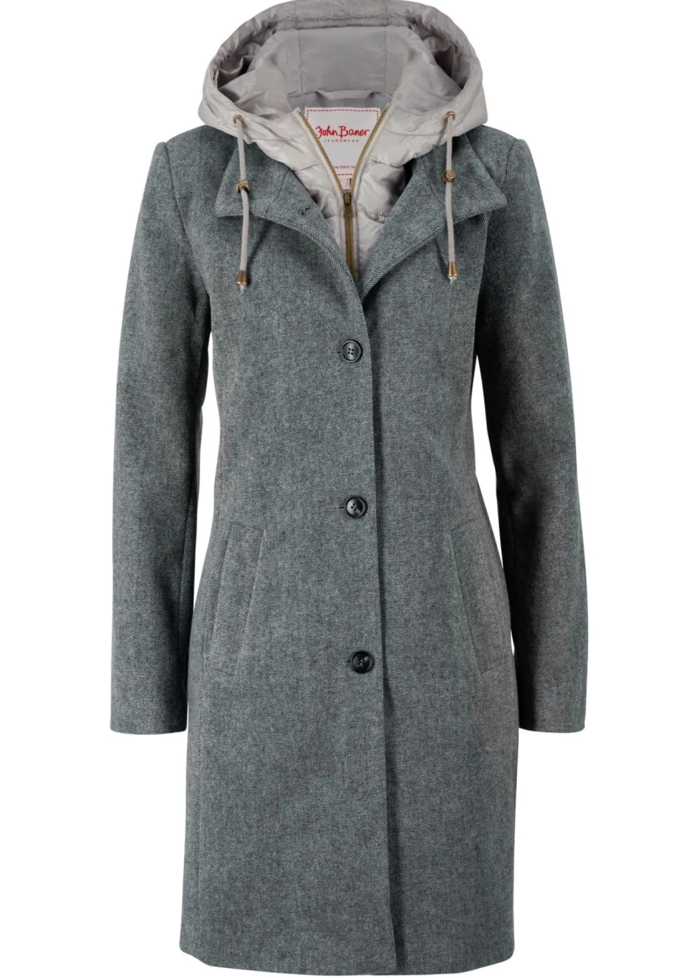 Moderno abrigo de invierno con aspecto de lana. Largo de aprox. 90 cm en talla 42. Se puede lavar a máquina.