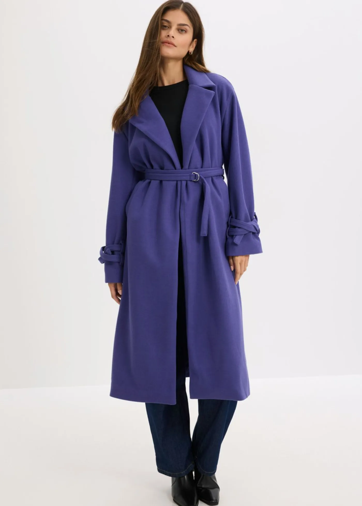 Abrigo holgado con cinturón y doble enganche en las mangas.