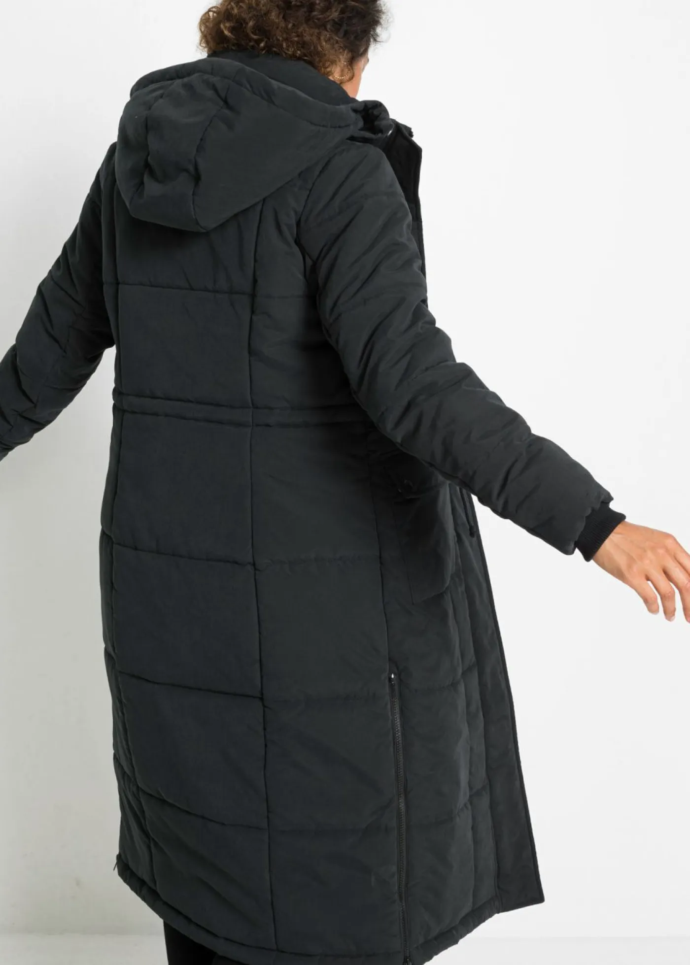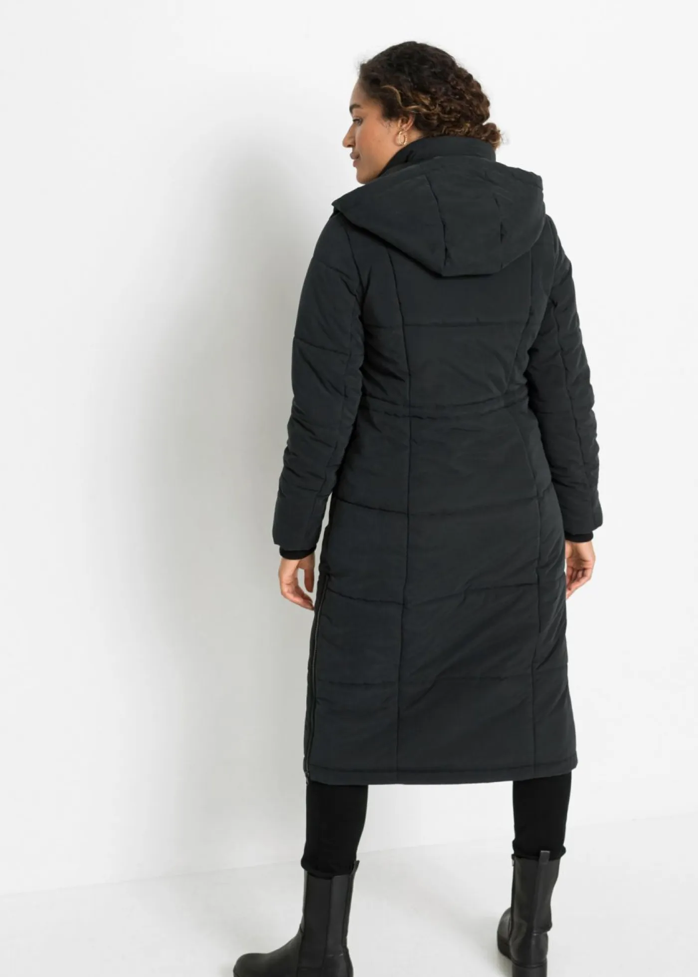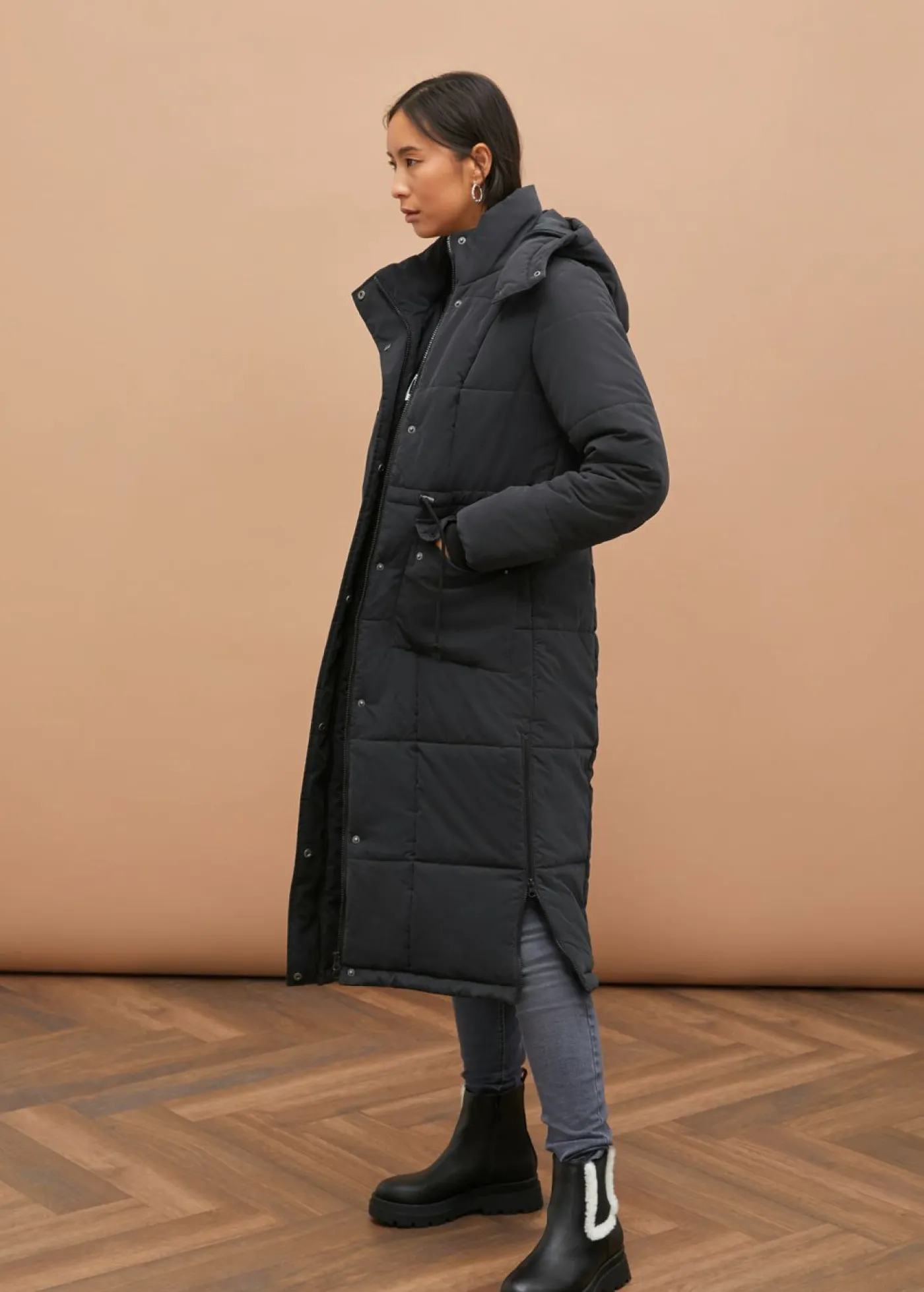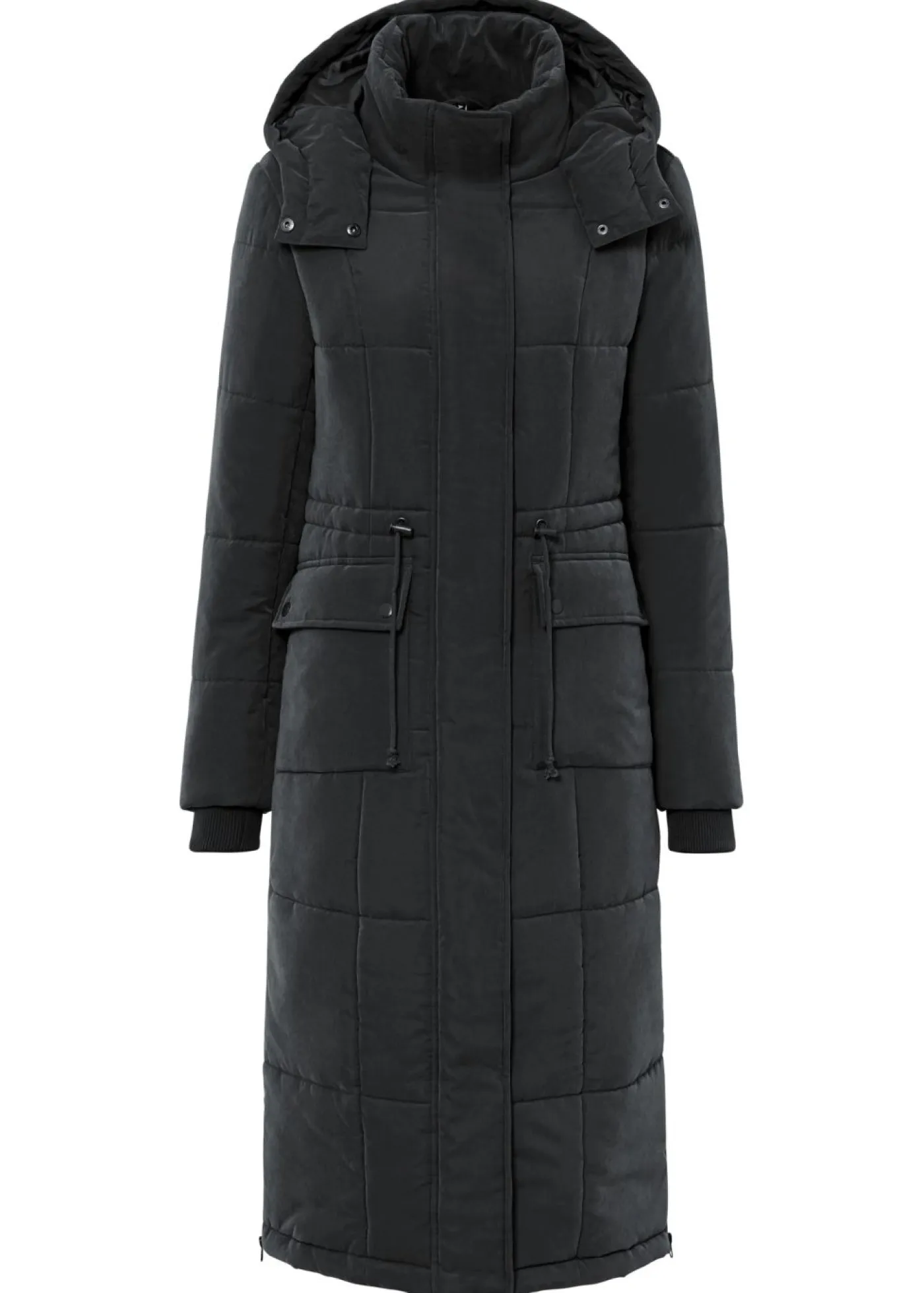Abrigo de invierno largo con capucha.