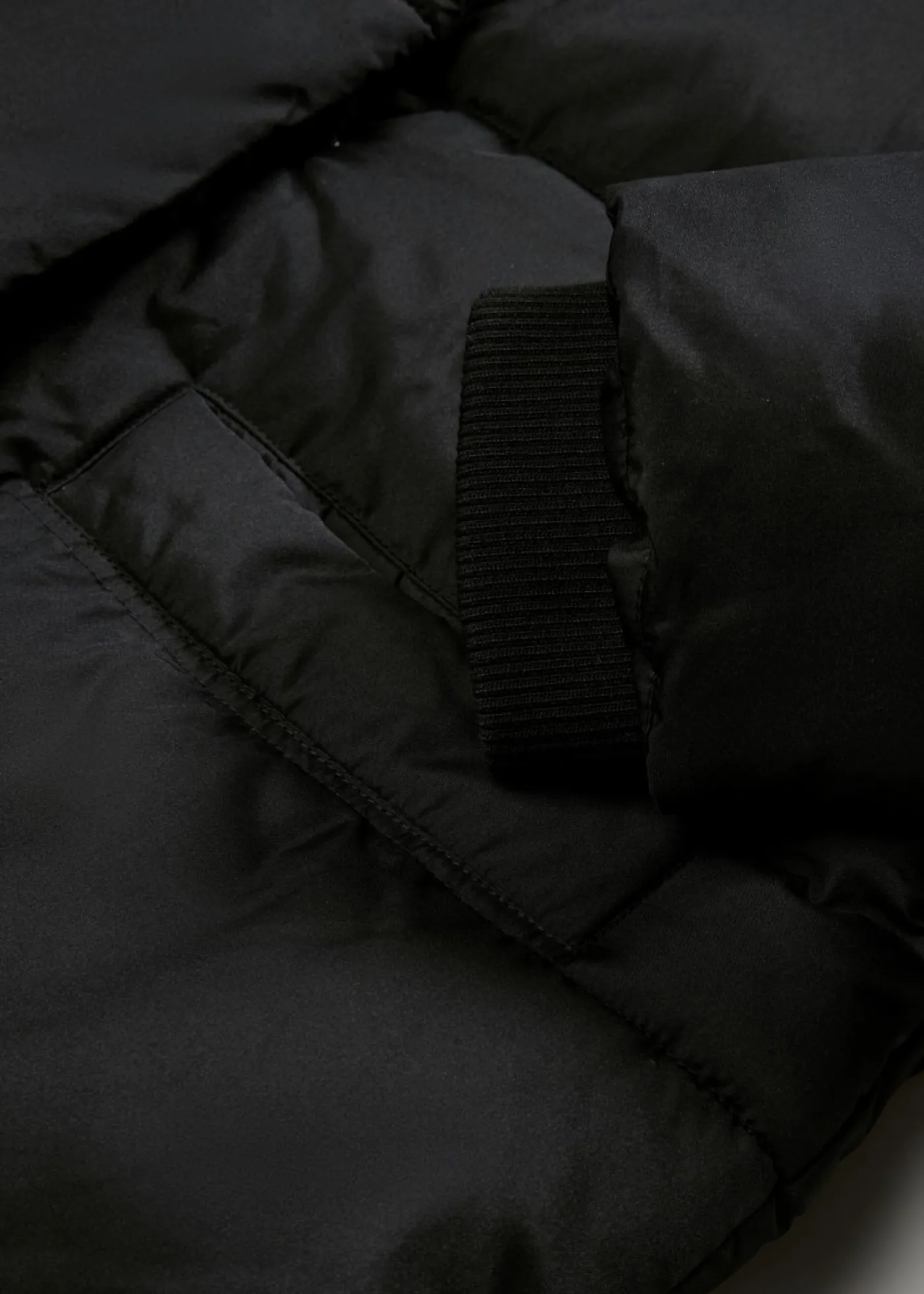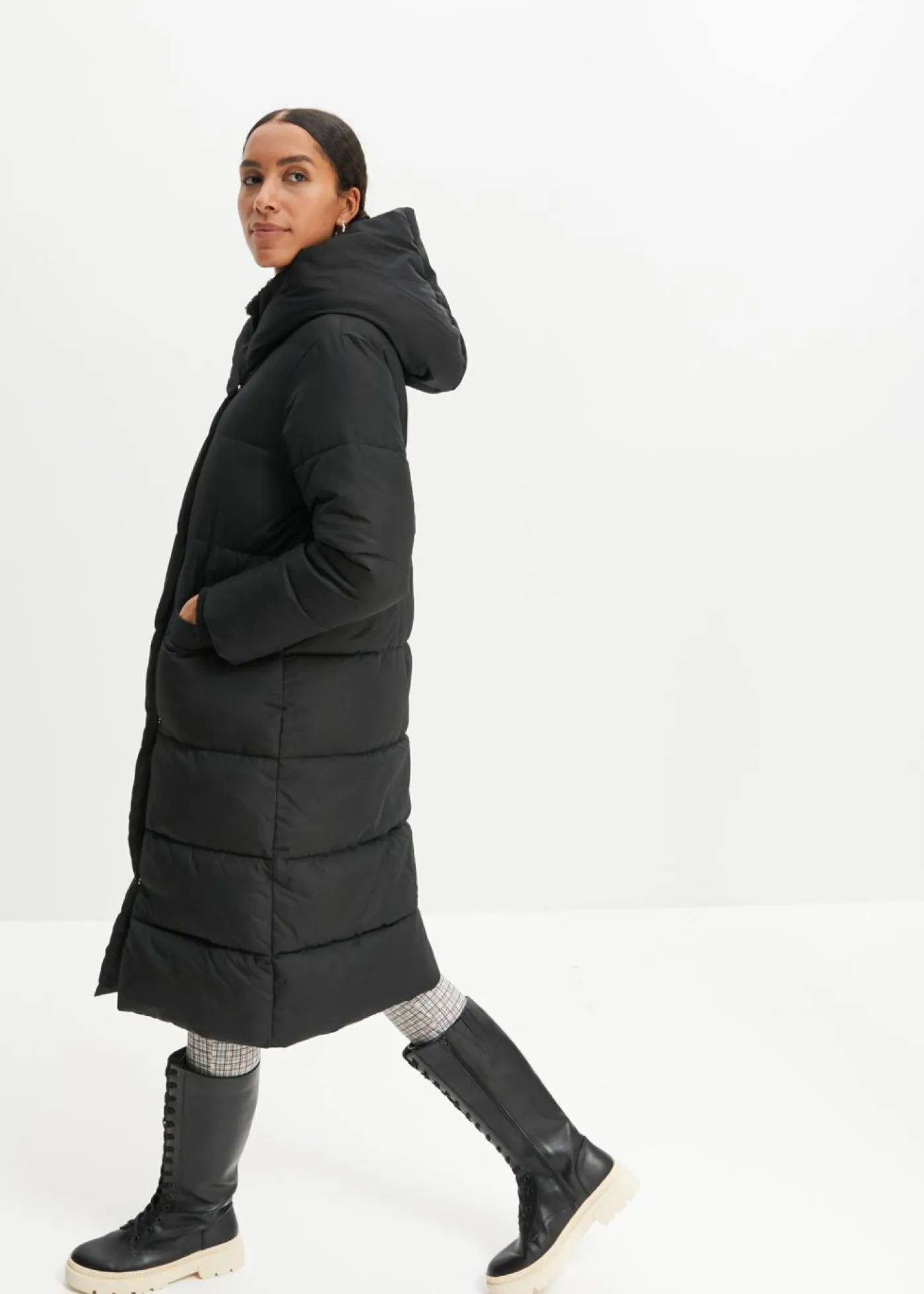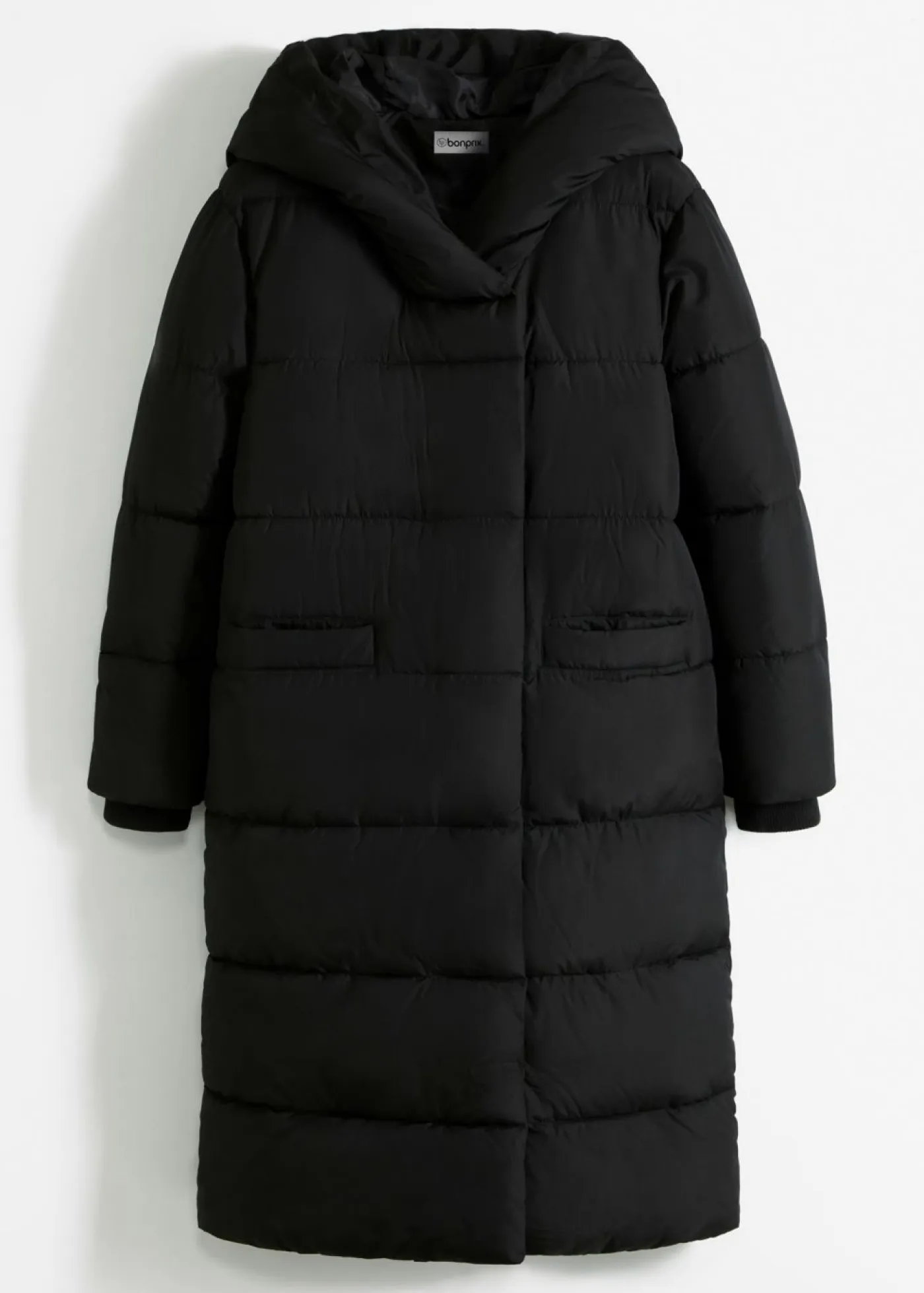 Moderno abrigo con capucha con un guateado de gran tamaño.