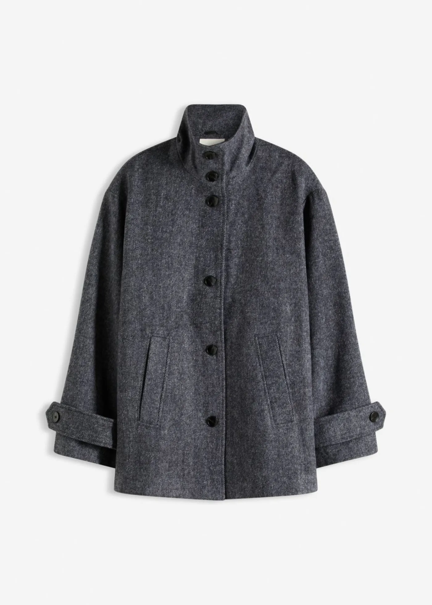 Con bolsillos y cuello alto.