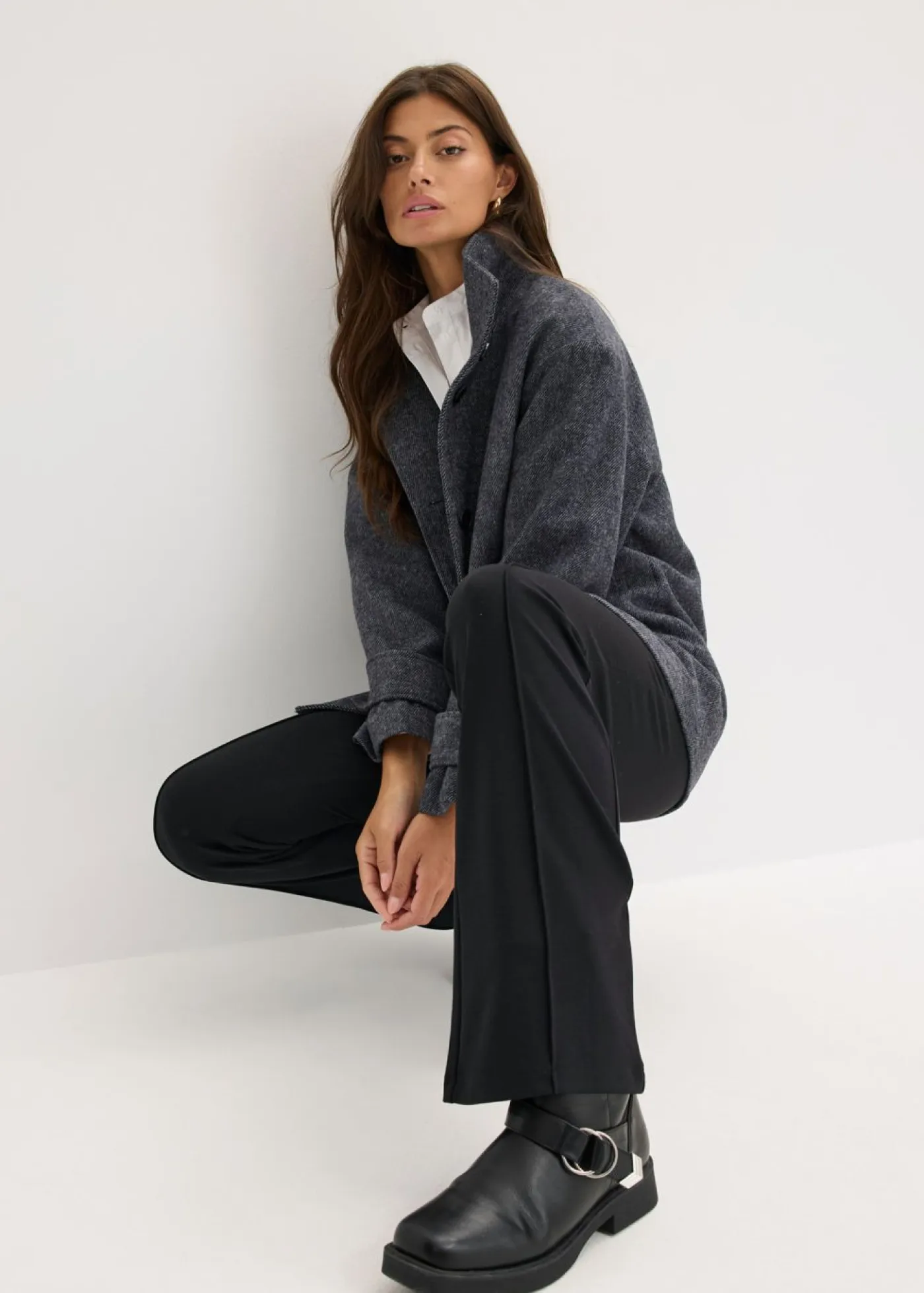 Abrigo marinero largo con aspecto de lana