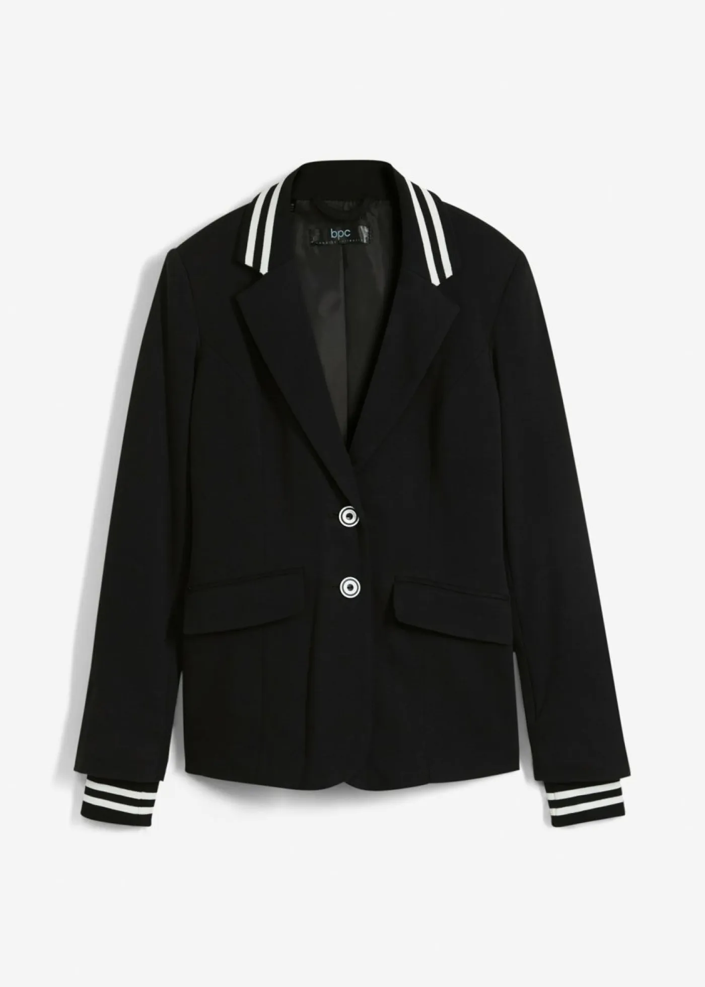 Americana de punto informal con detalles marítimos. Largo de aprox. 64 cm (talla 38) a 73 cm (talla 56). Se puede lavar a máquina.