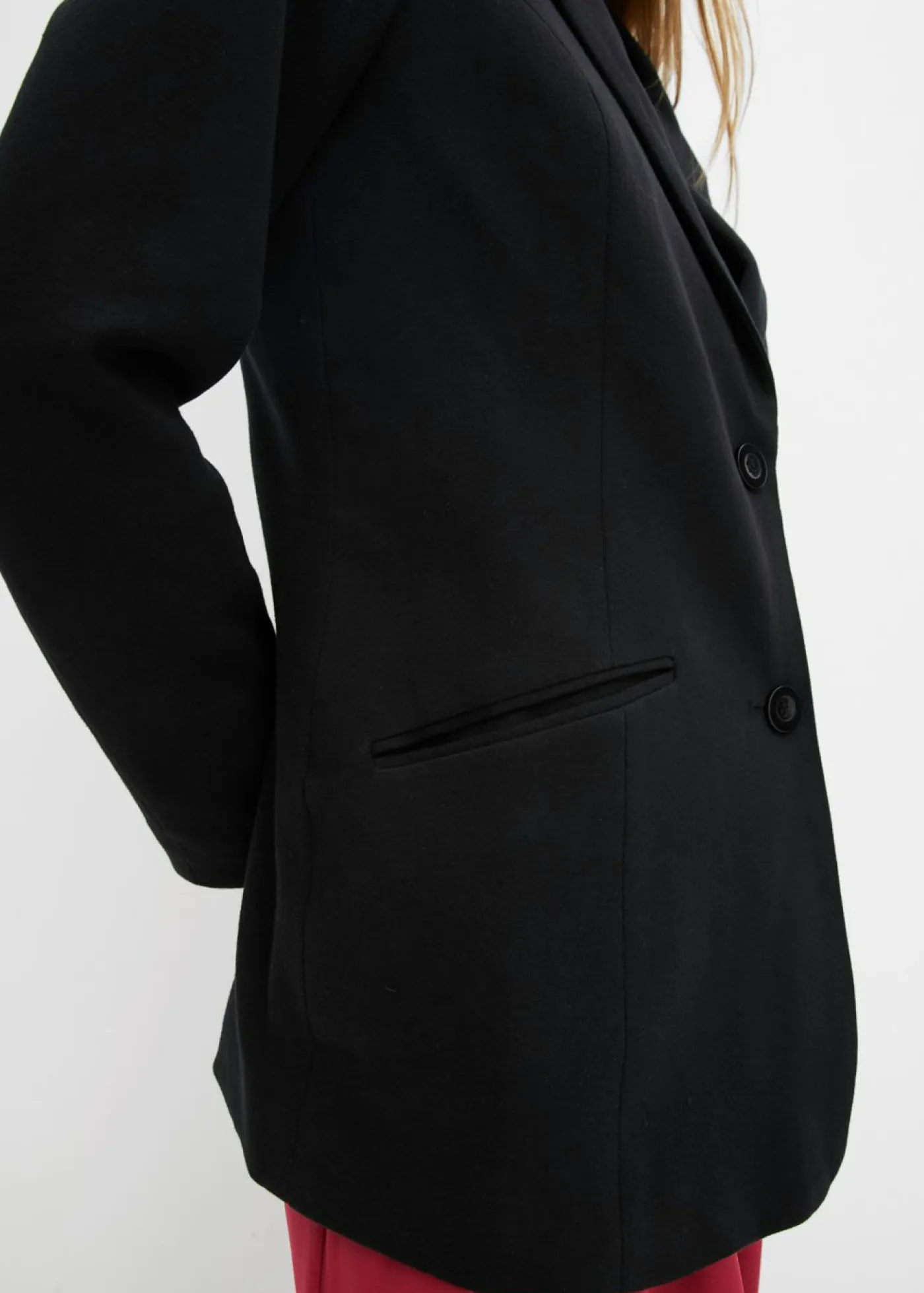 Americana larga de punto moderna con corte elegante. Largo de aprox. 73 cm en talla 42. Se puede lavar a máquina.