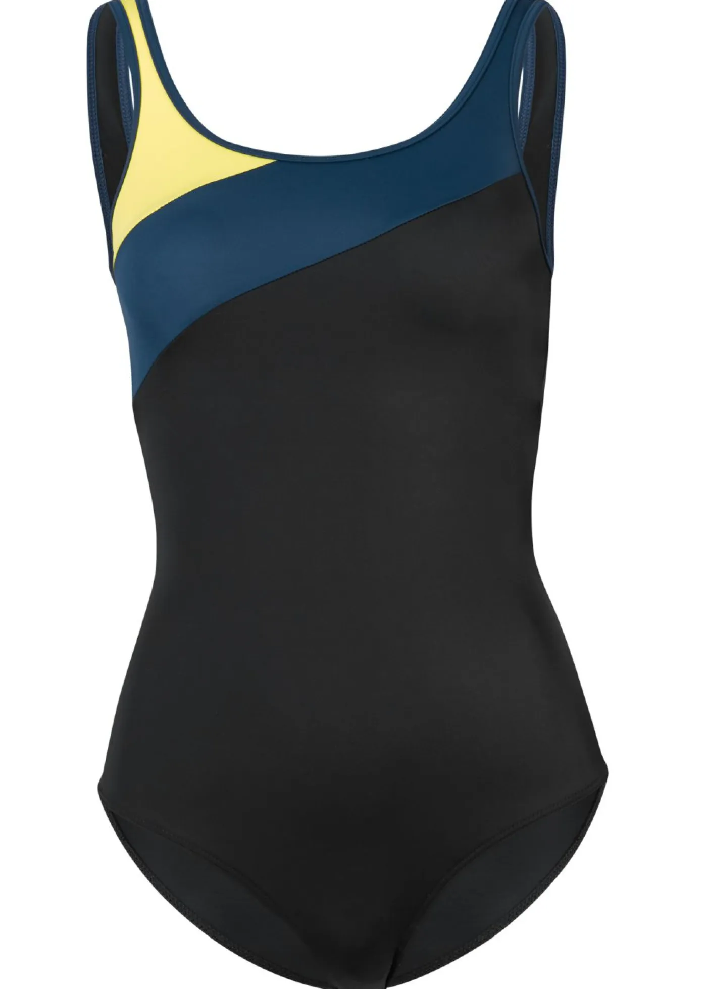 Bañador deportivo en colores vivos de material de secado rápido. Con forro en el pecho y una banda elástica en la parte inferior del mismo para una mayor sujeción.