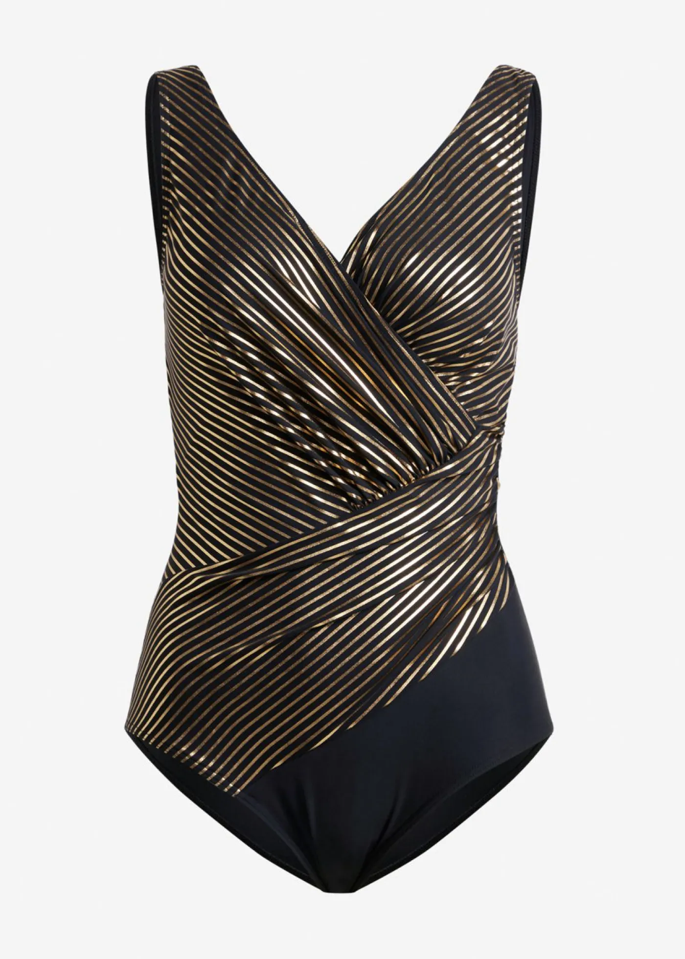 Exclusivo bañador moldeador con estampado dorado.