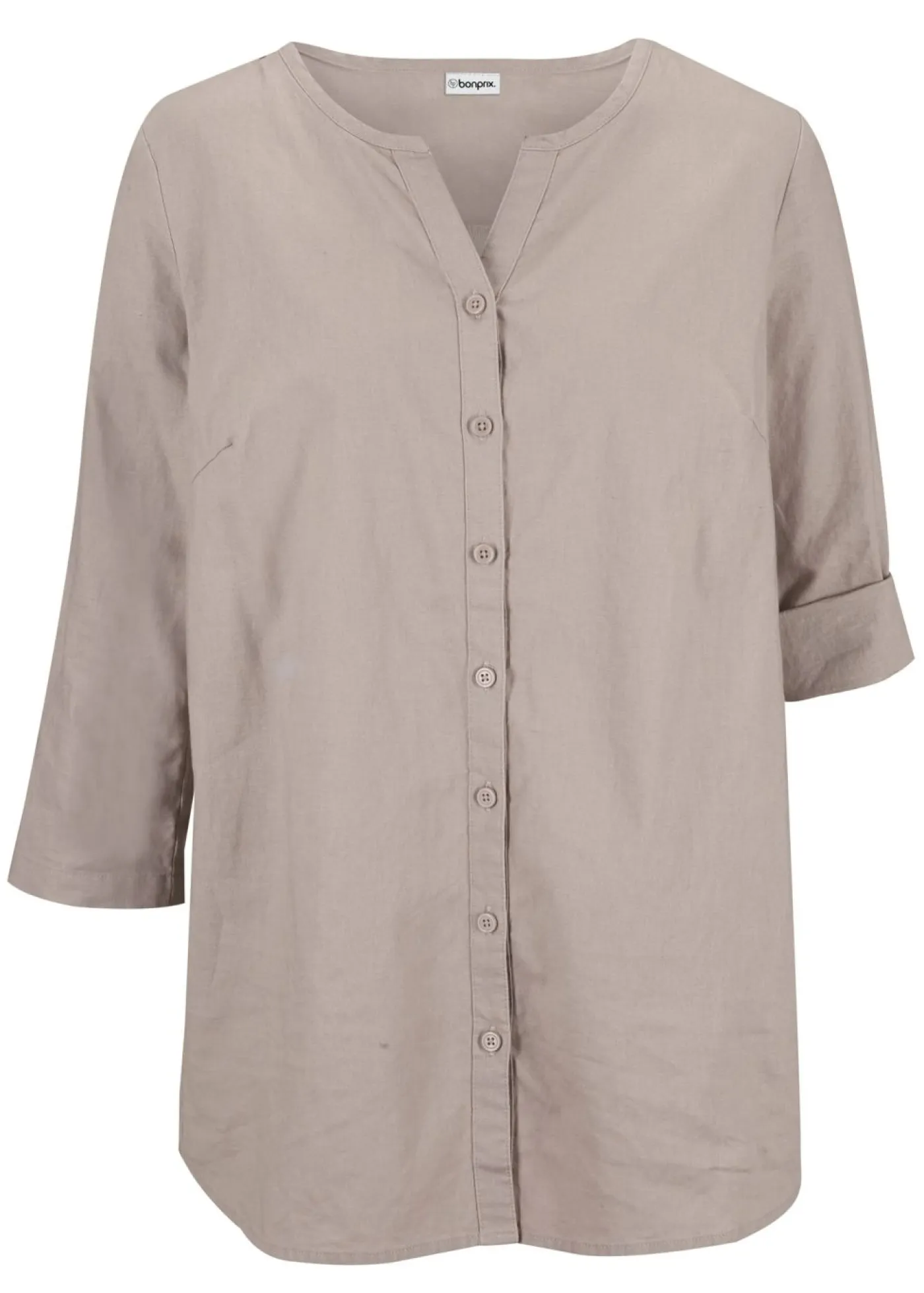 La moderna blusa de lino realza la figura gracias a su carácter informal. Largo de aprox. 70 cm (talla 38) a 79 cm (talla 56). Se puede lavar a máquina.