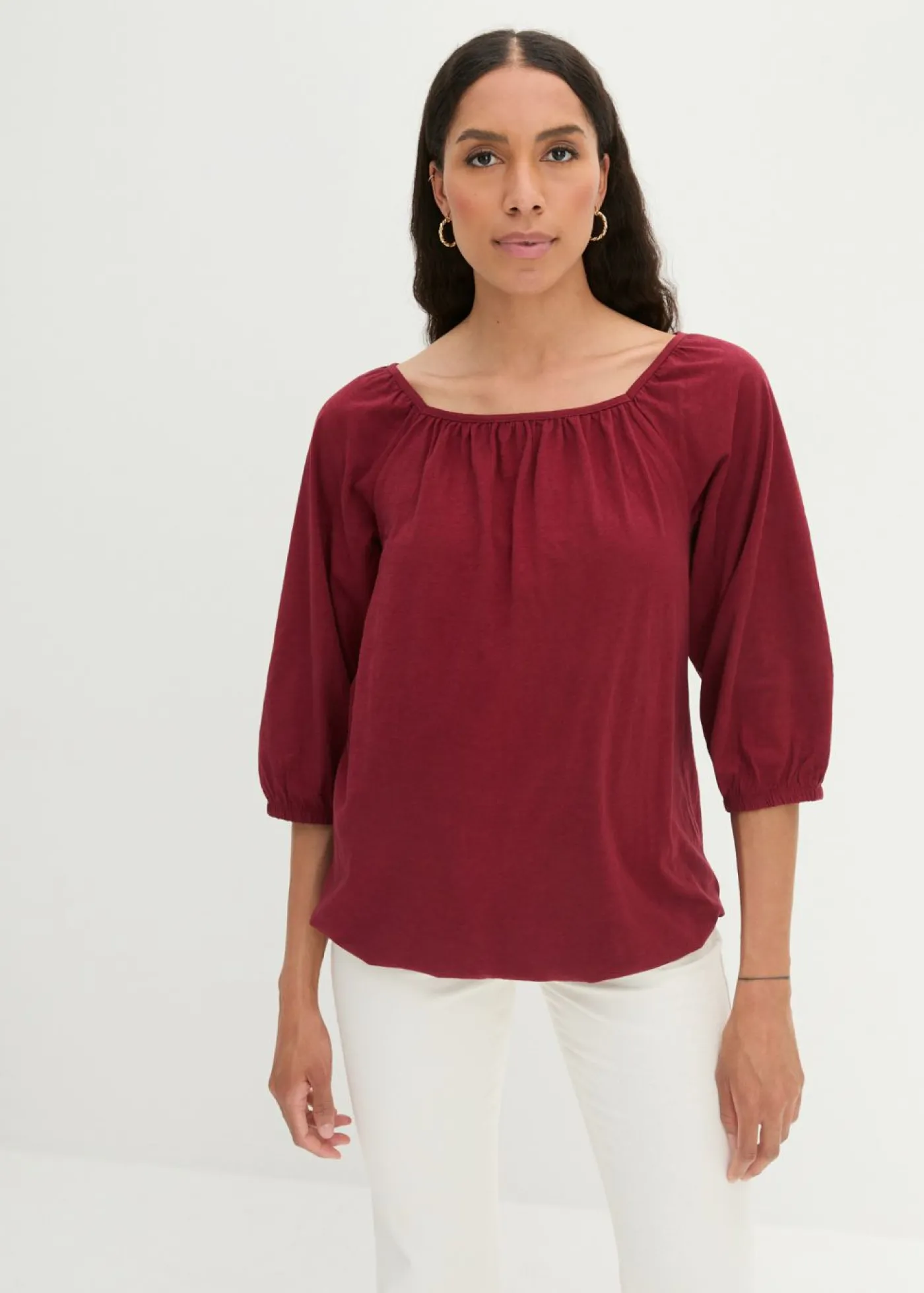 Camiseta moderna con escote cuadrado y favorecedoras mangas abullonadas. Largo de aprox. 70 cm en talla 40/42. Se puede lavar a máquina.