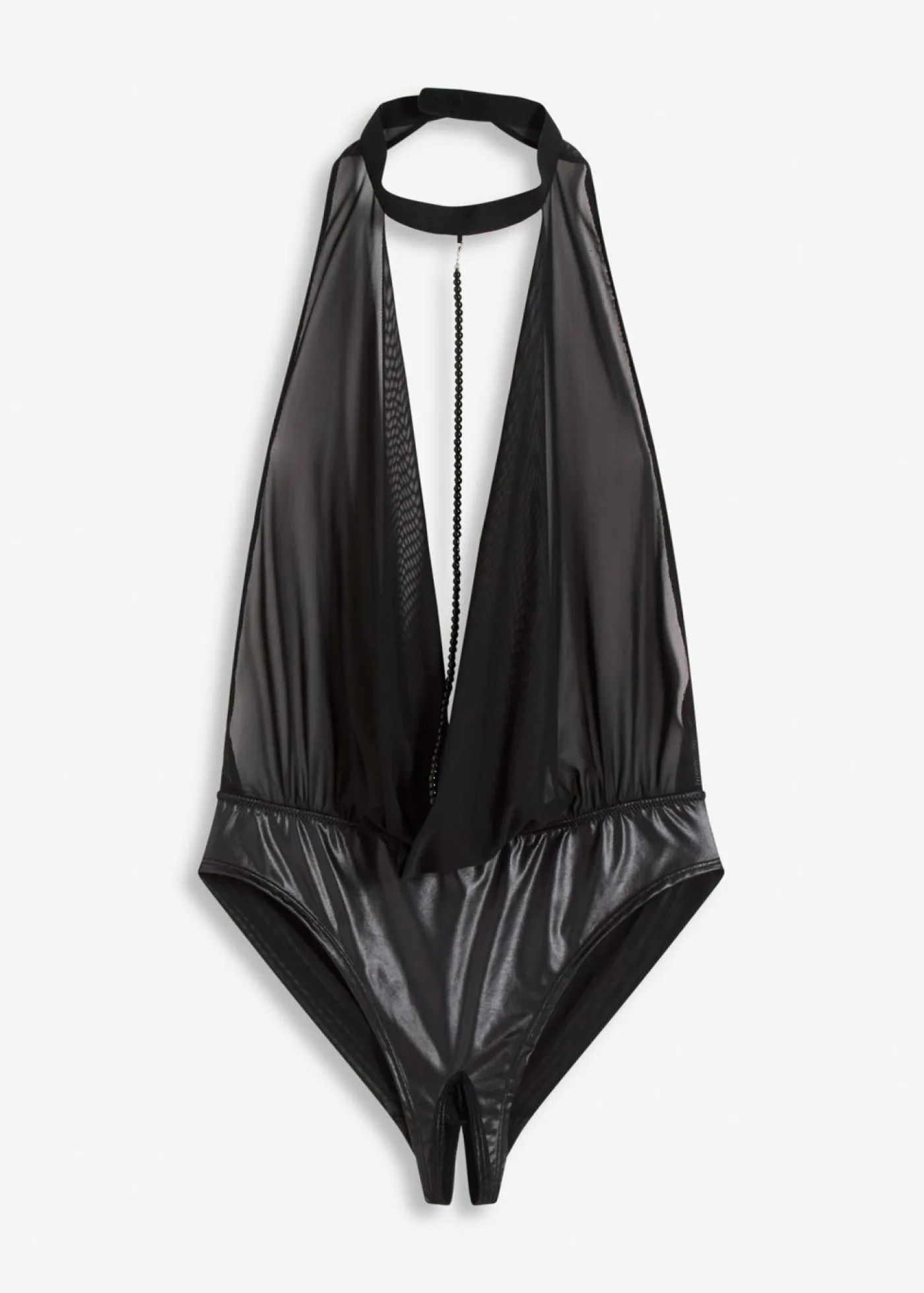 Body de malla fina con cadena desmontable y abertura.