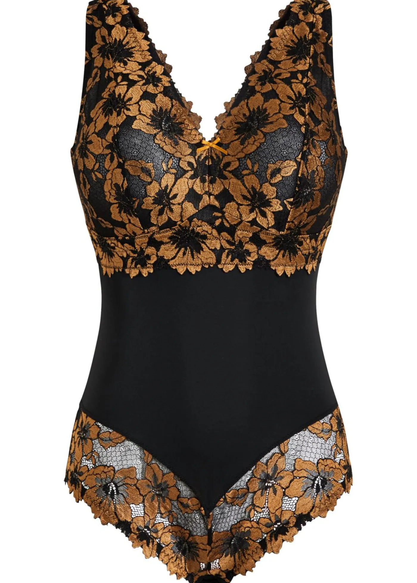 Body sin aros con adorno de encaje. Sin aros, se desata con un solo gancho.