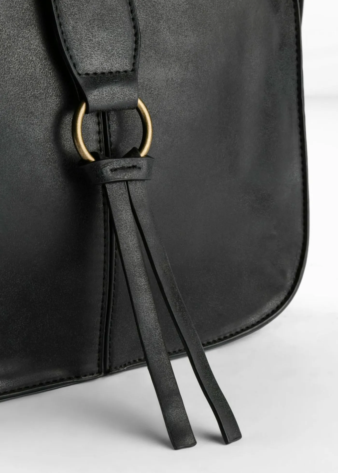 Hermoso bolso bandolera con apariencia de cuero. Bolso de estilo bandolera para el día a día con detalle de anillo dorado.