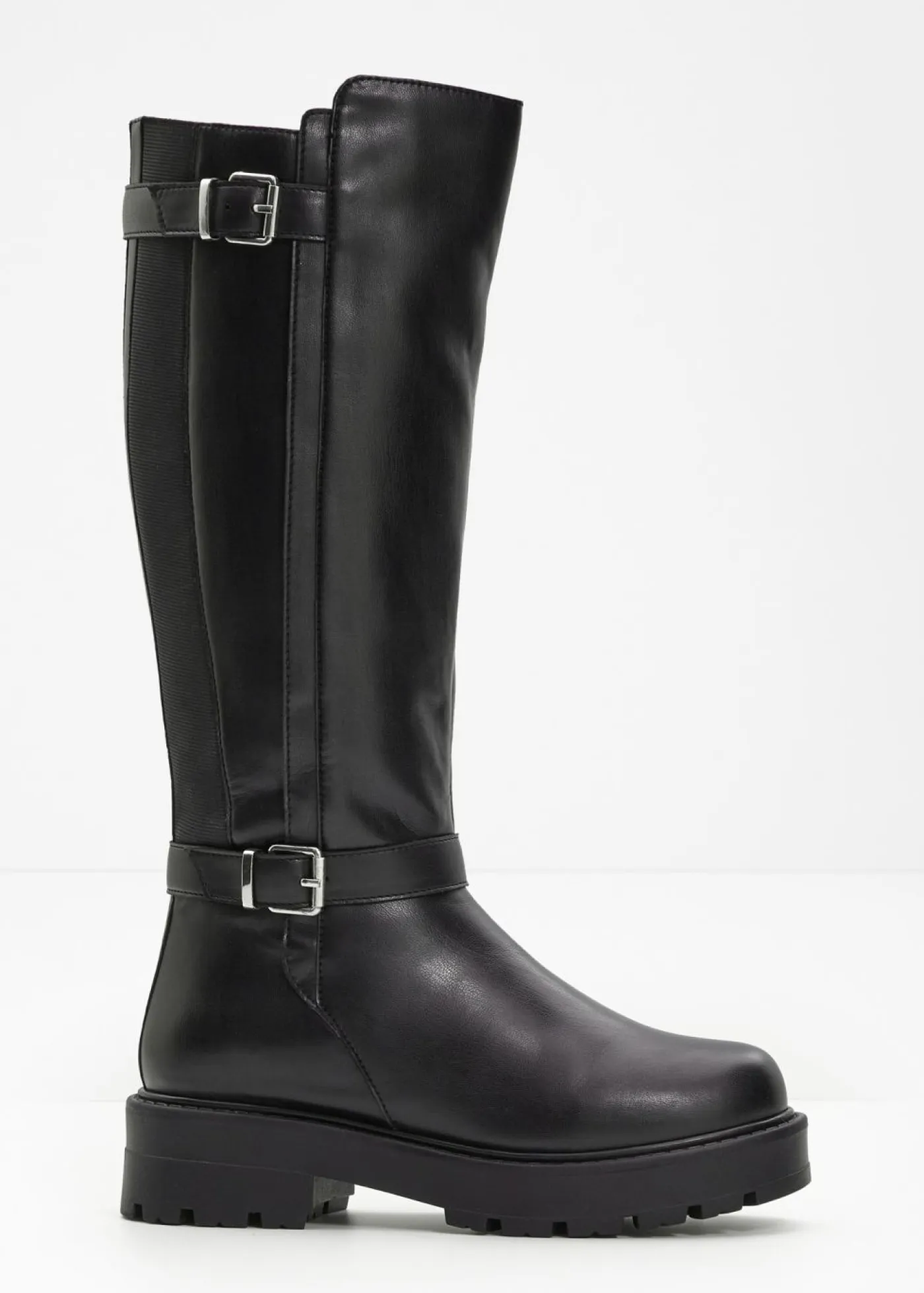 Botas con forro cálido, hebillas decorativas e insertos elásticos.