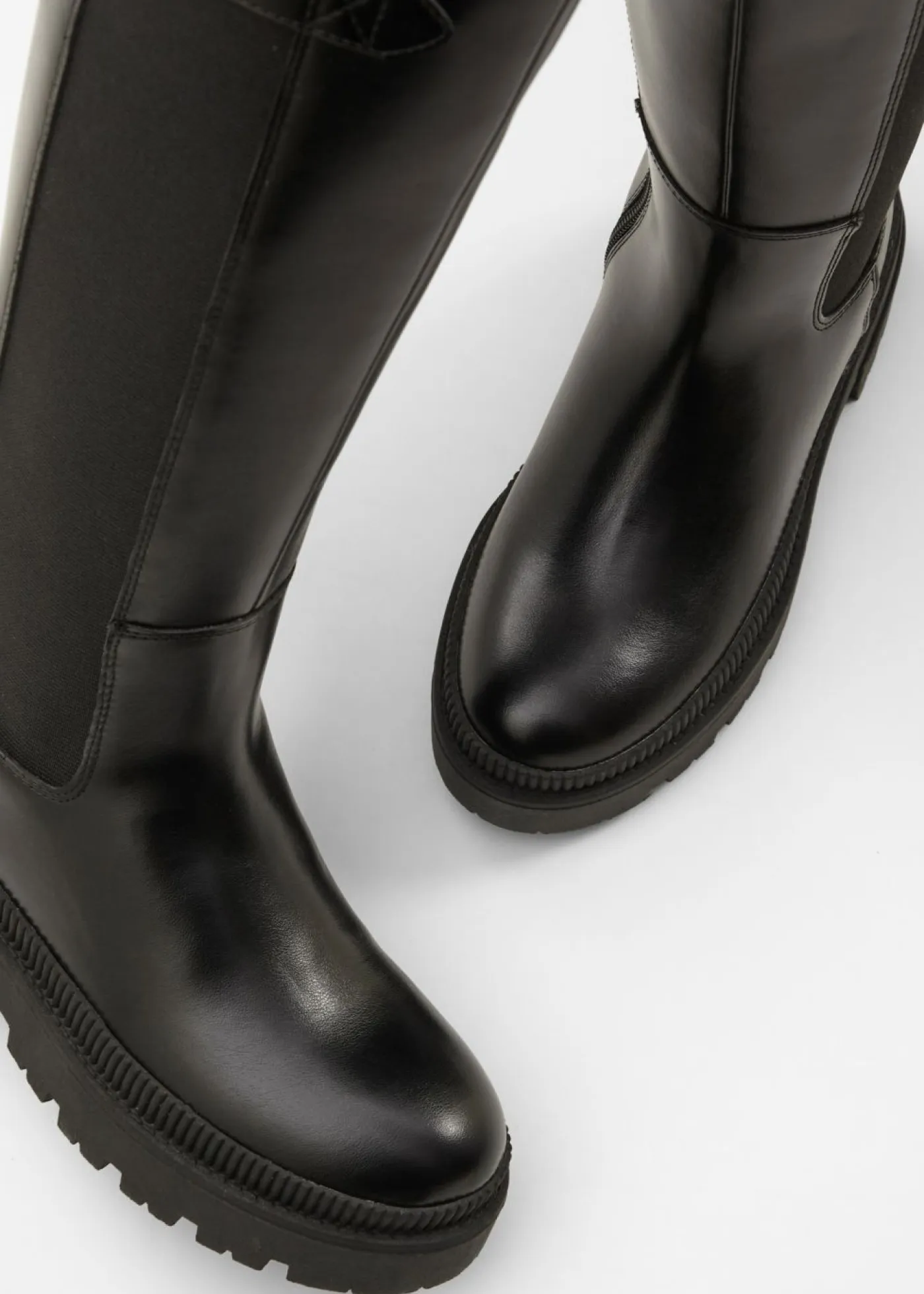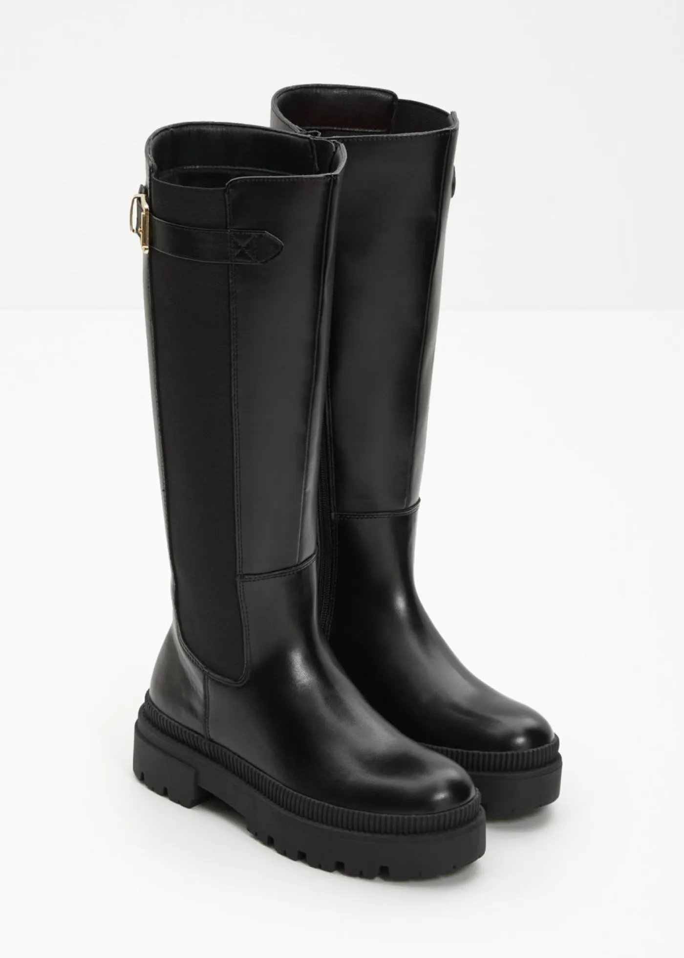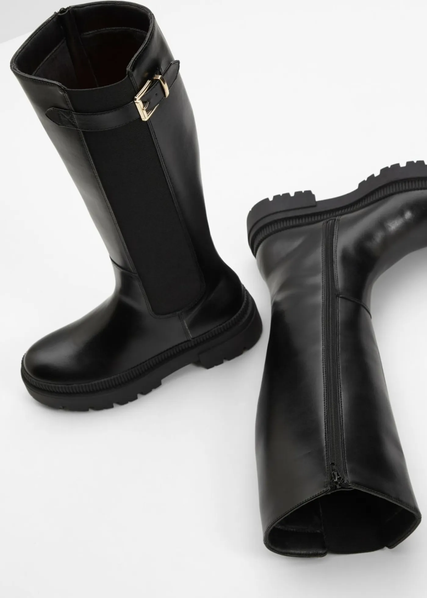 Bonitas botas con inserto elástico y hebilla decorativa.
