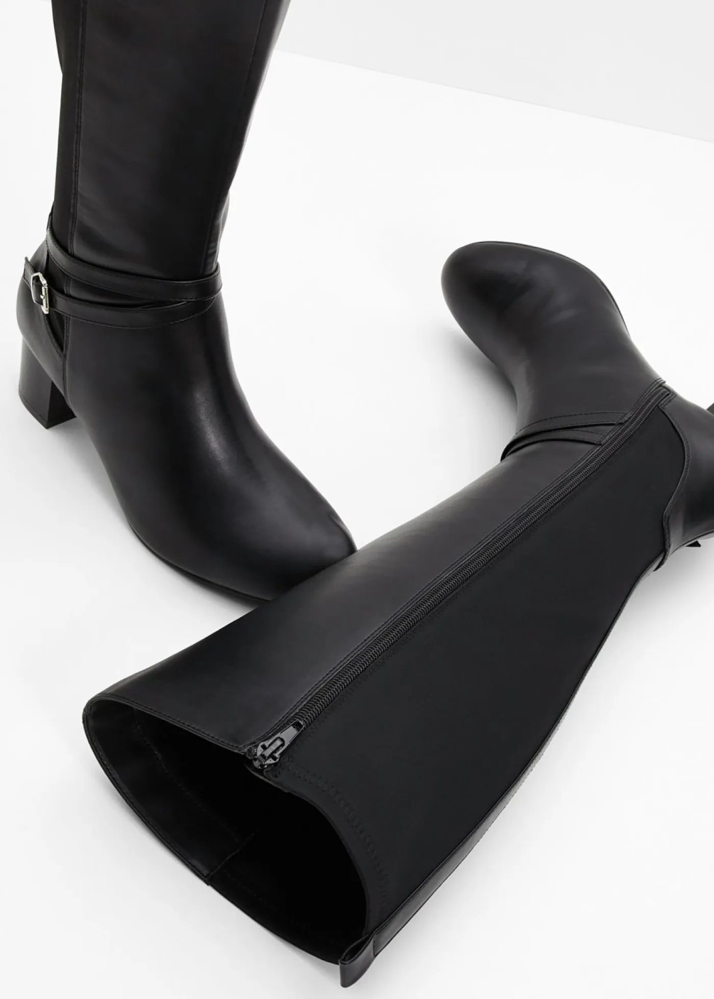 Botín atemporal de caña ancha con hebilla decorativa.