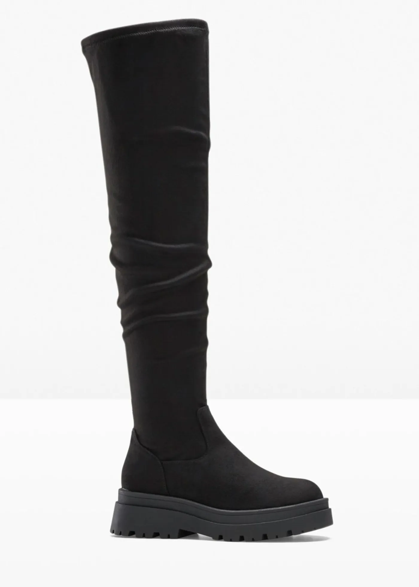 Botas altas con suela llamativa.