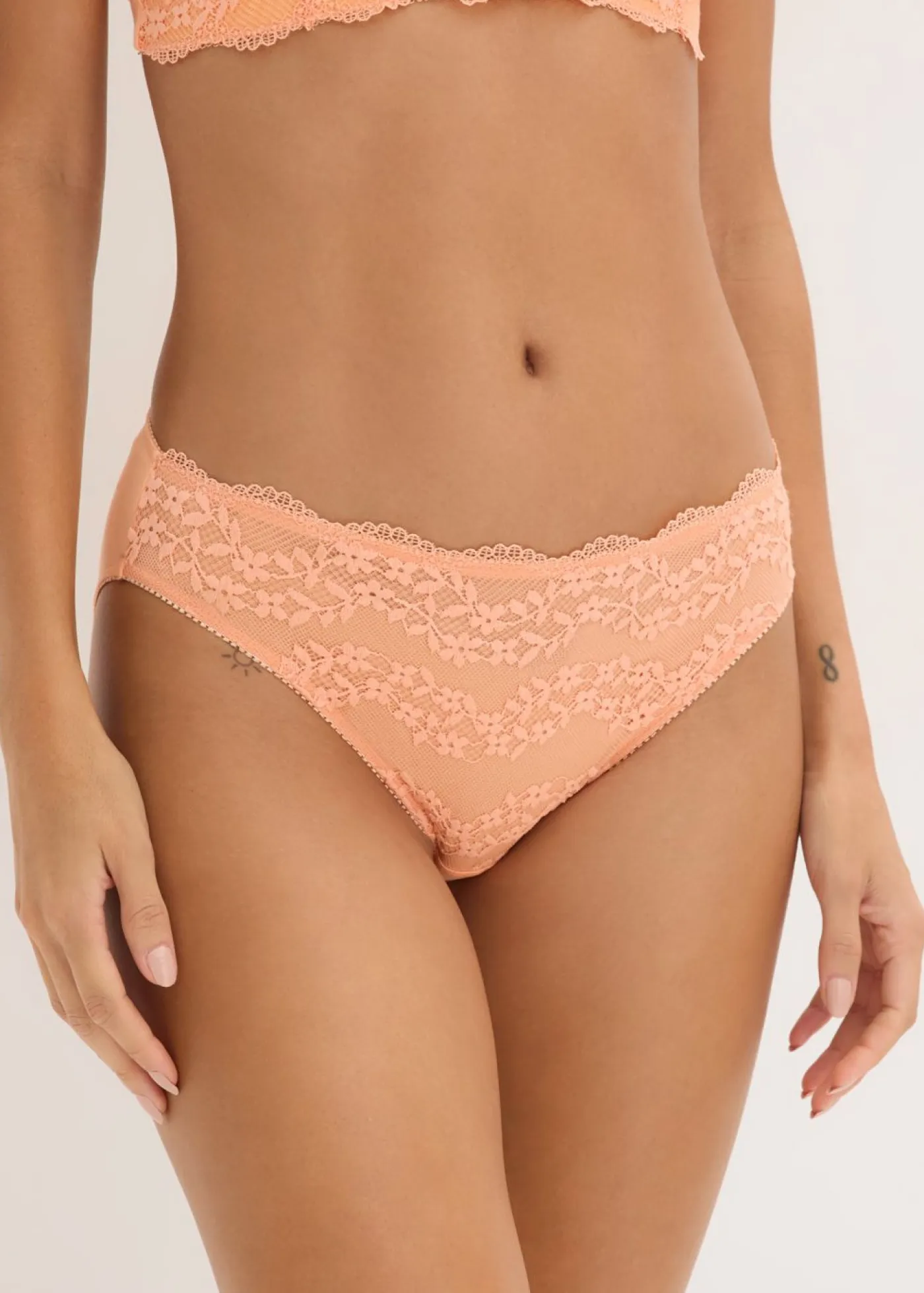 | Material | Material externo: 95% algodón (orgánico), 5% elastano; Forro: 92% poliamida, 8% elastano; Encaje: 55% poliamida, 36% poliamida (reciclado), 9% elastano |