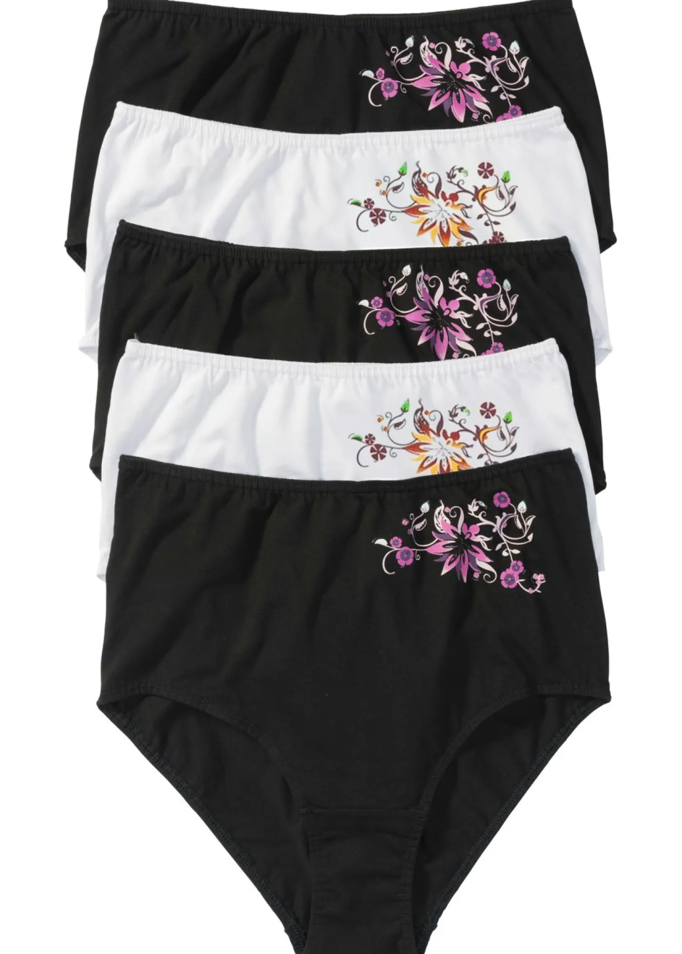 Braga de talle alto con motivo en un práctico paquete de cinco. estampado; 2x blanco, 3x negro.