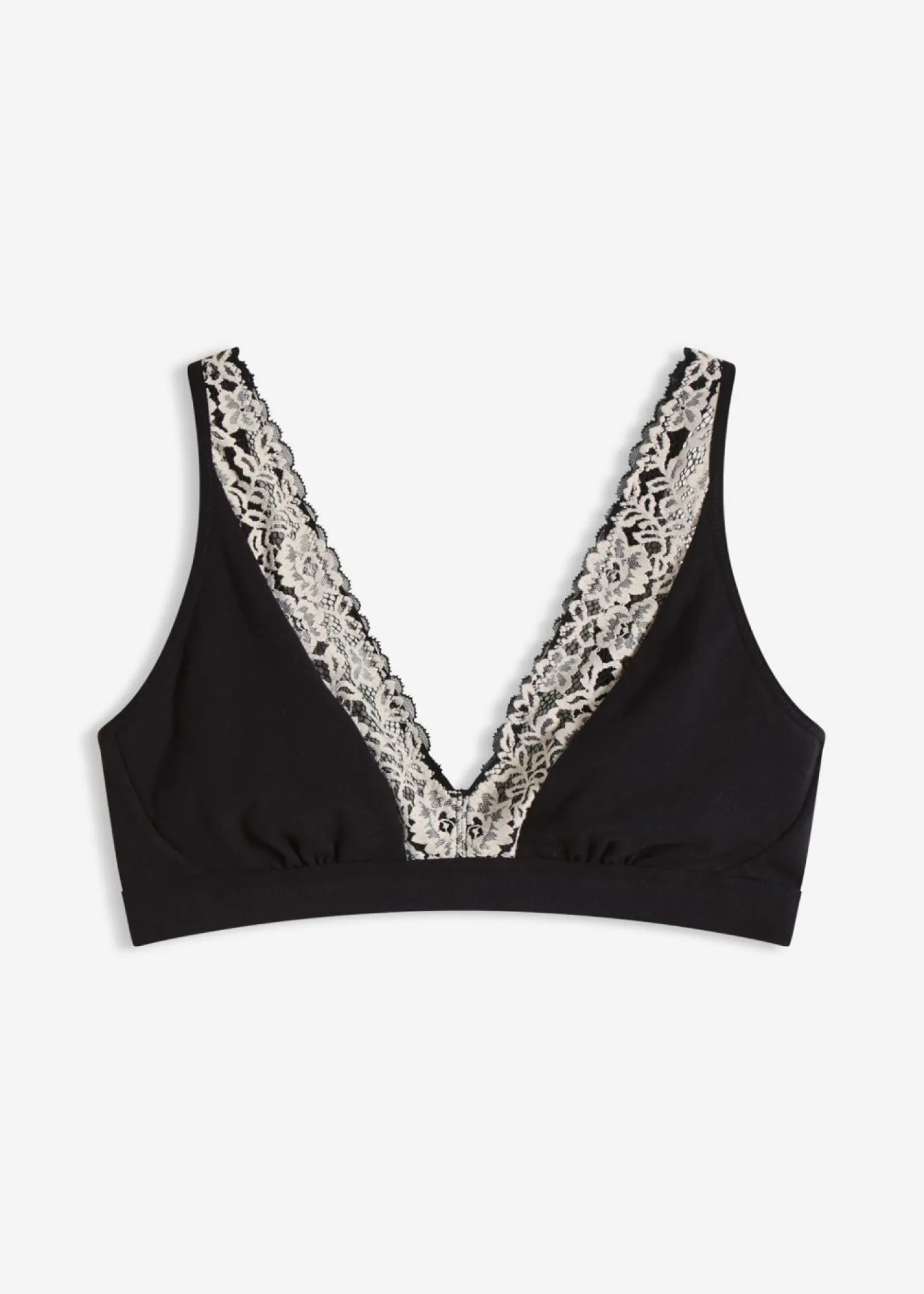 Bonito bralette sin aros con algodón orgánico y encaje en los tirantes.