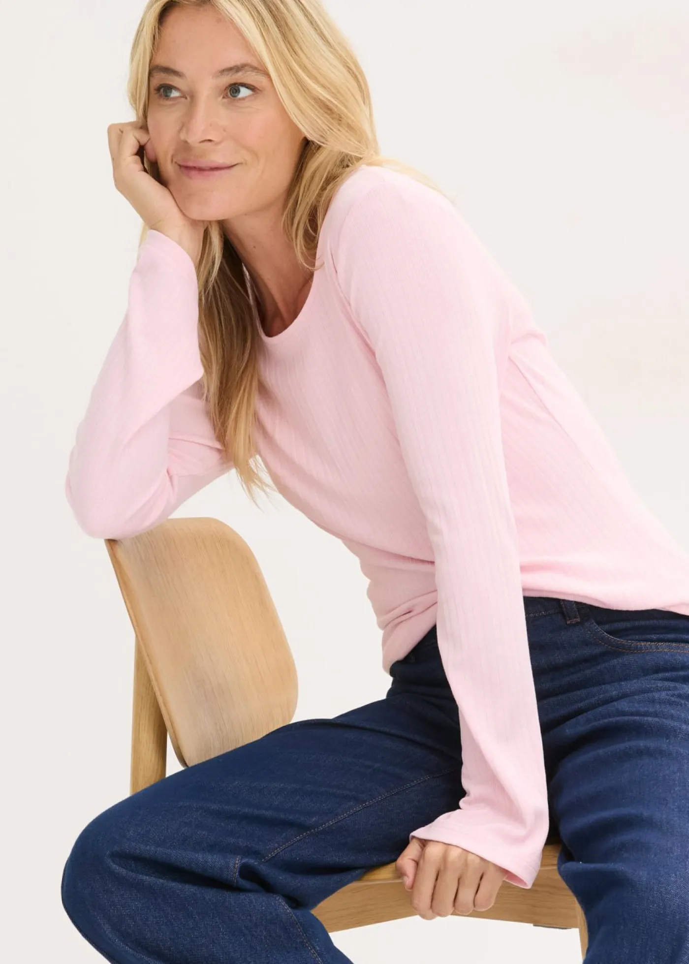 Camiseta acanalada de manga larga fácil de combinar.