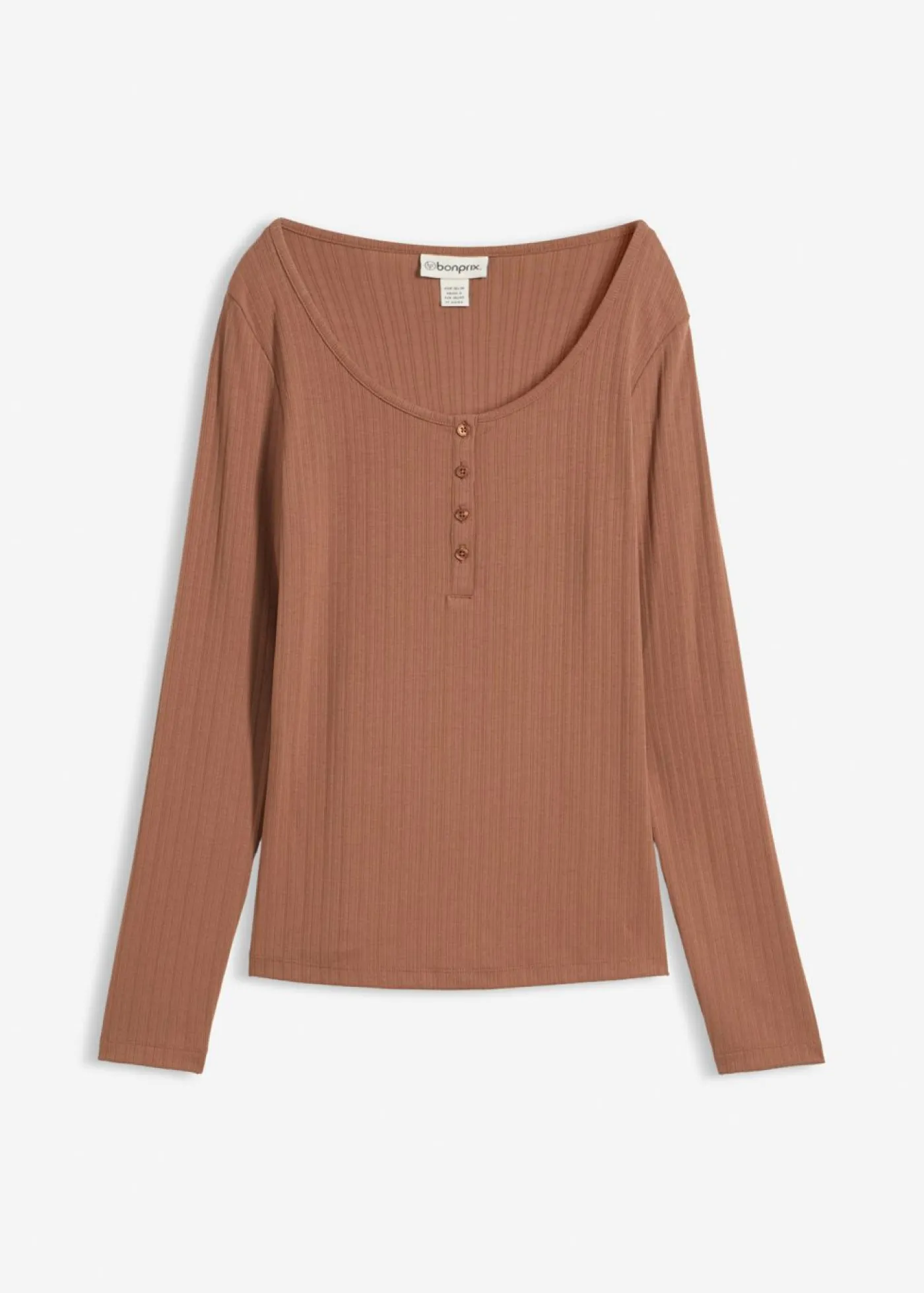 Camiseta versátil de manga larga fácil con botones decorativos.