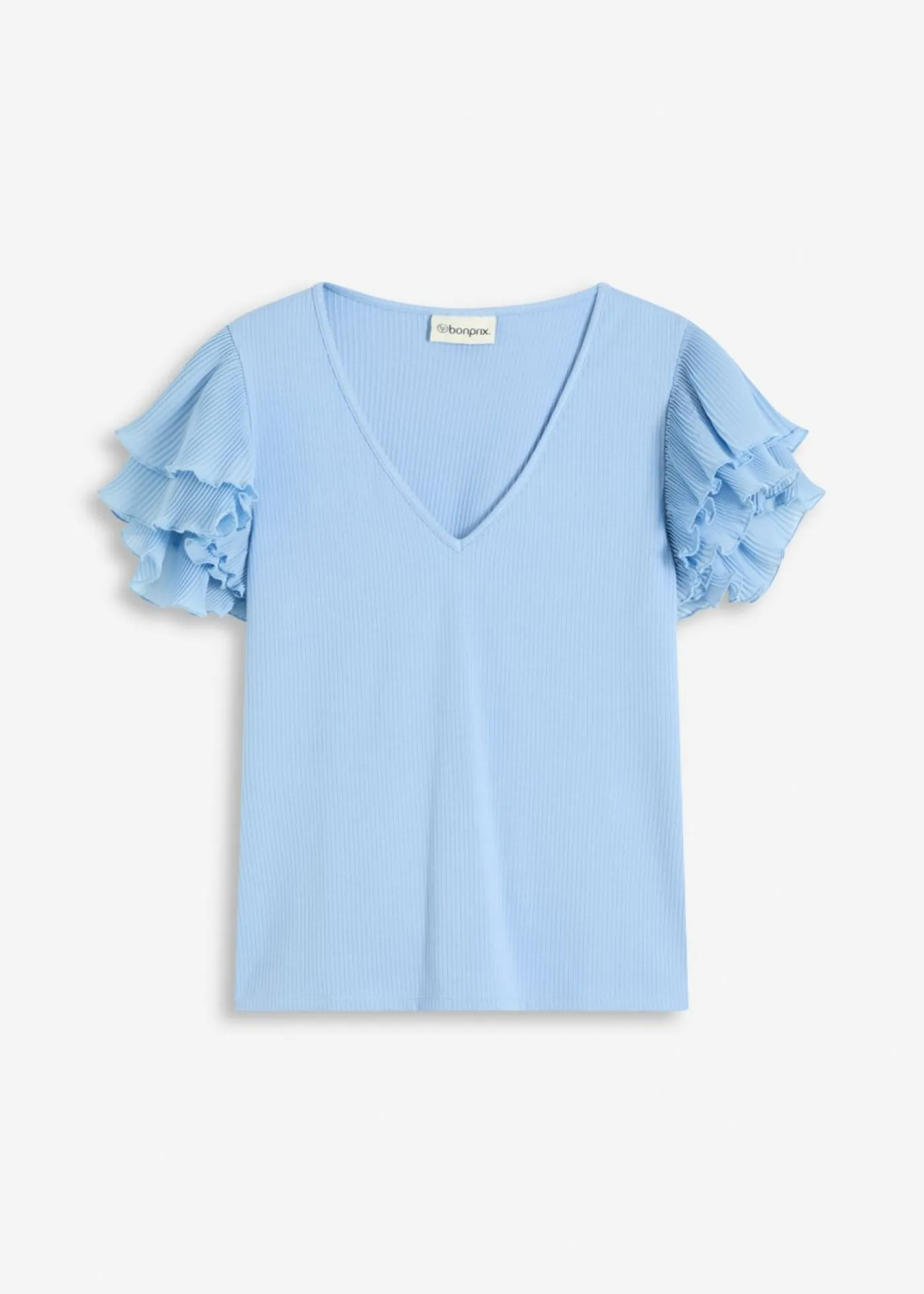 Camiseta de canalé con mangas plisadas con volantes.