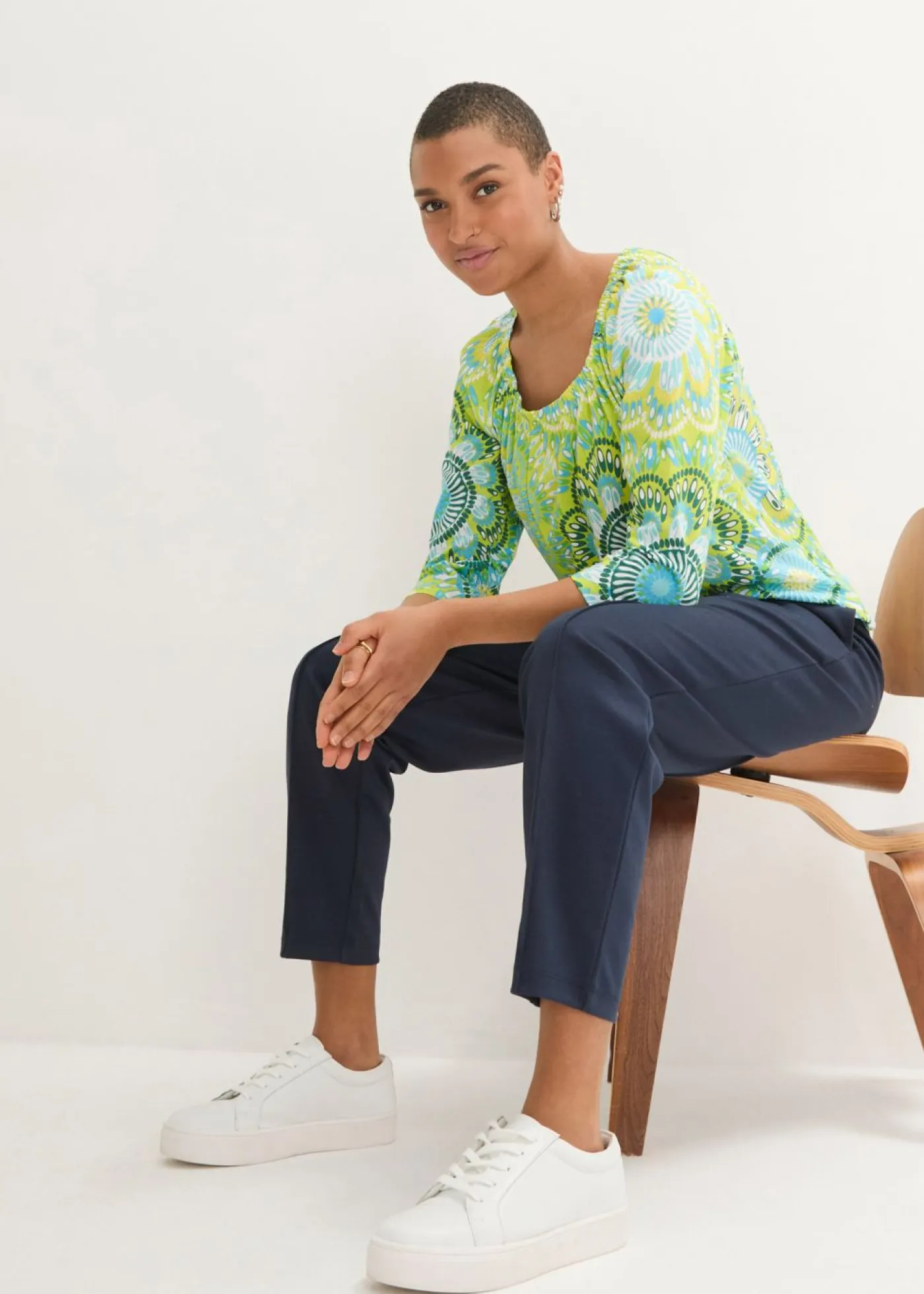 Camiseta estampado con favorecedor corte en A. Largo de aprox. 72 cm (talla 36/38) a aprox. 80 cm (talla 56/58). Se puede lavar a máquina.
