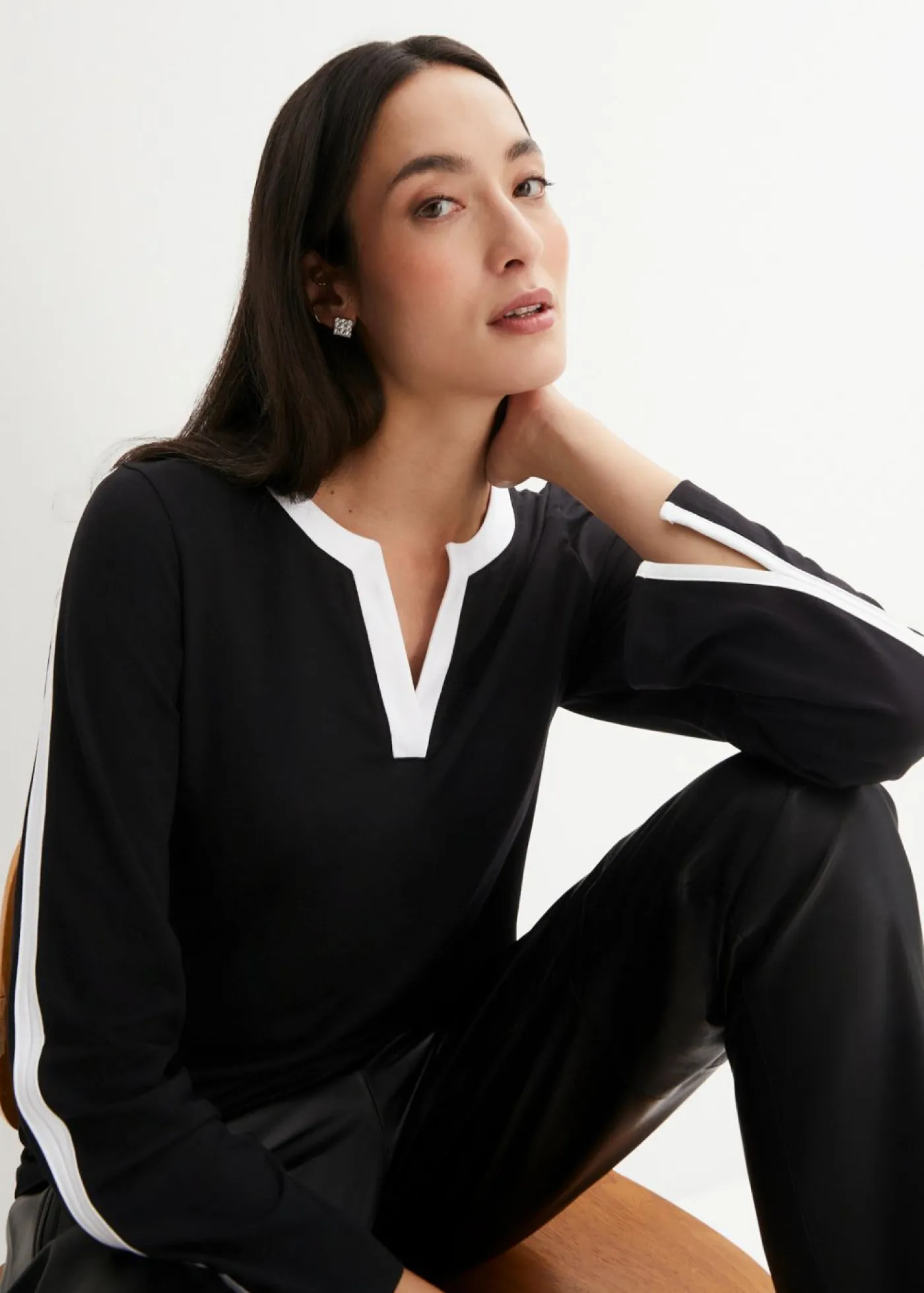 Elegante camiseta de manga larga con abertura.