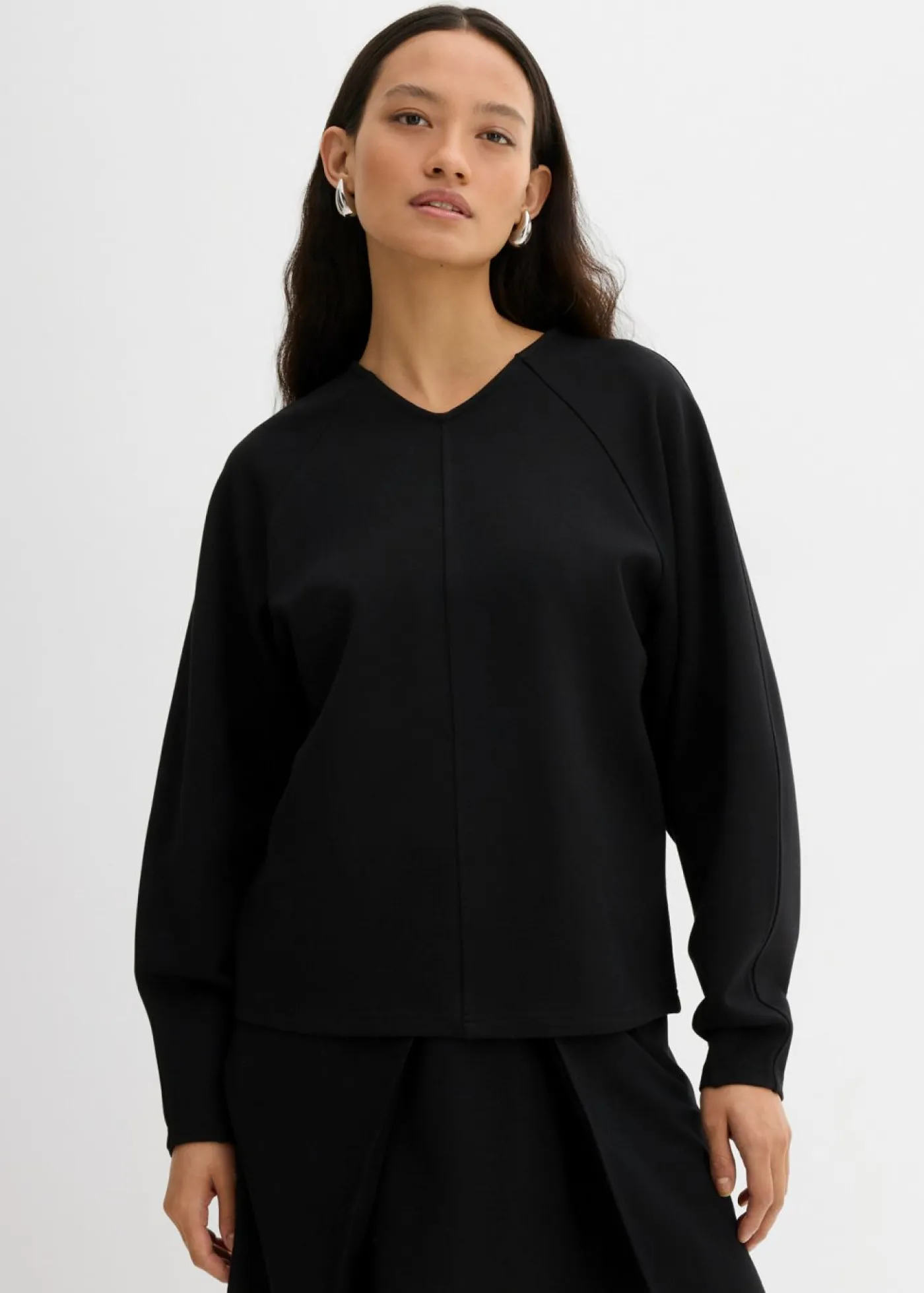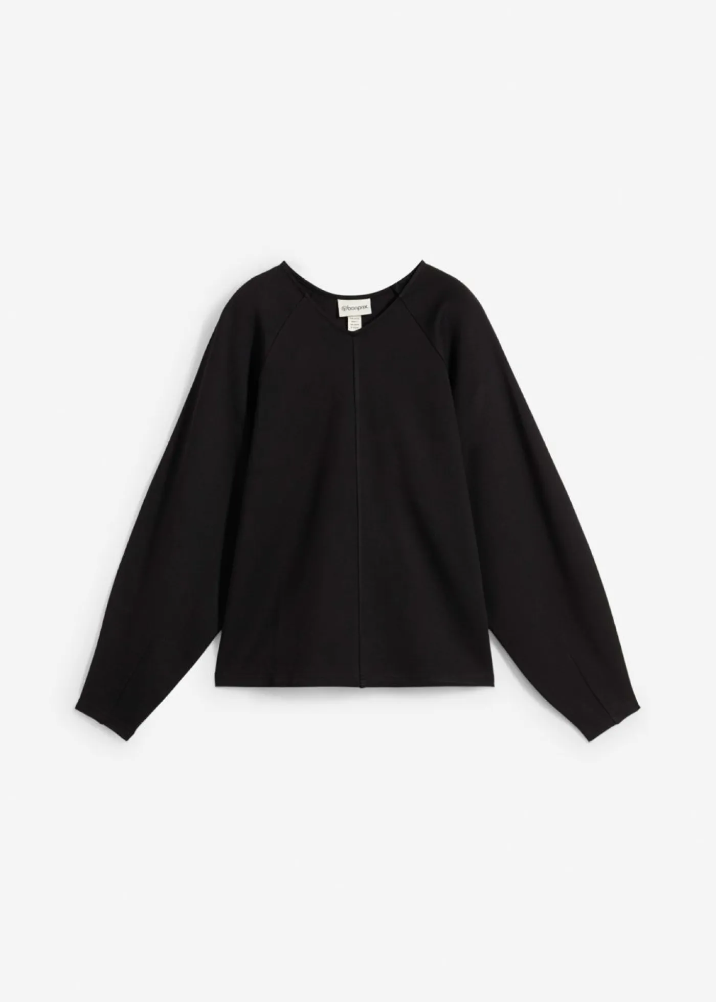 Camiseta de manga larga con corte recto, escote en V ribeteado y costura divisoria en la parte delantera y trasera.
